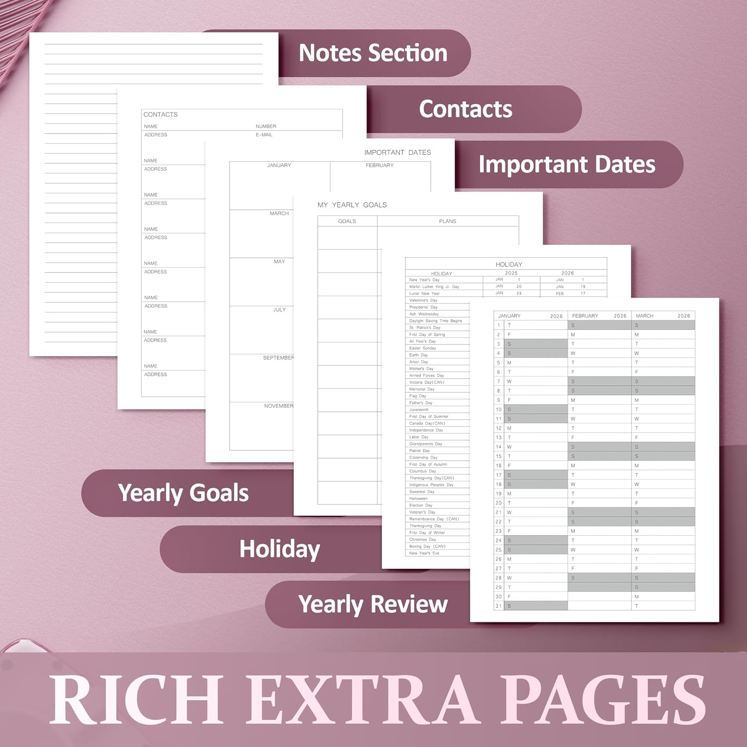 - Complete Planning System: More than just a planner - this is your personal command center. Comprehensive 2025-2026 calendar pages meet SMART goal trackers, while convenient contacts organization meets essential holiday references. Additional conversion charts and note pages complete this all-encompassing system. From daily scheduling to long-term achievement tracking, every function complements the others for total life organization.