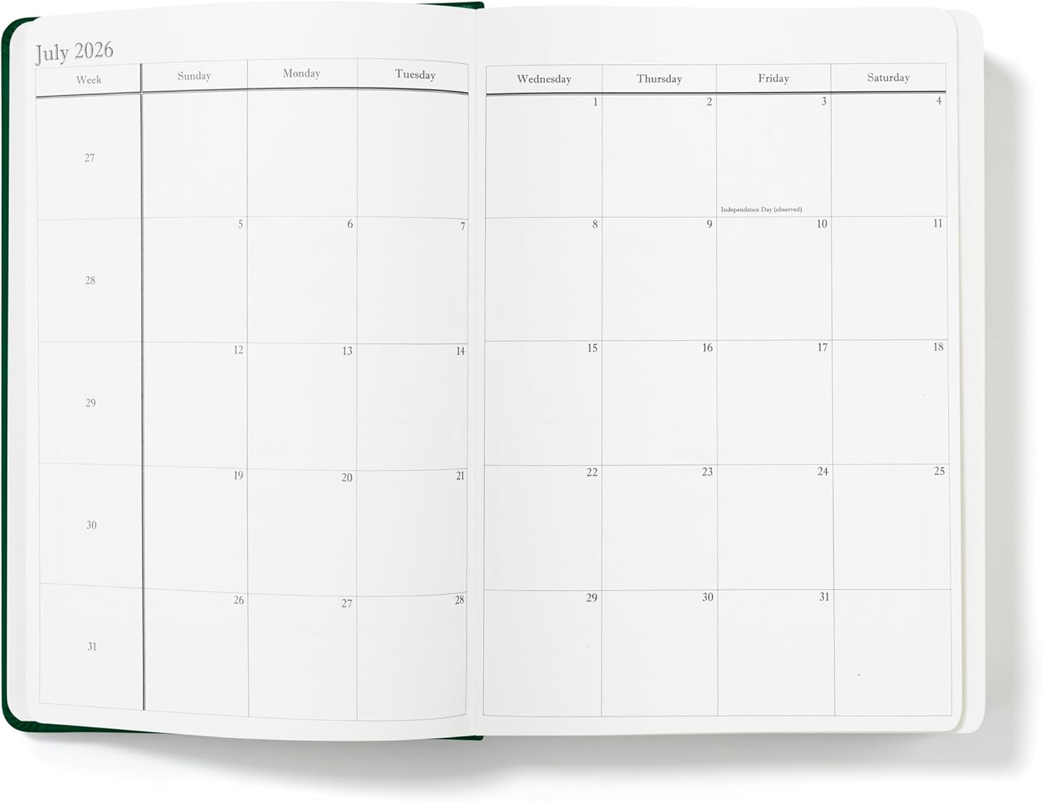 Wykeham's Executive 2026 Daily Journal Planner – US Public Holidays & Format – Customization Available (Racing Green, 8.5”×5.5”)