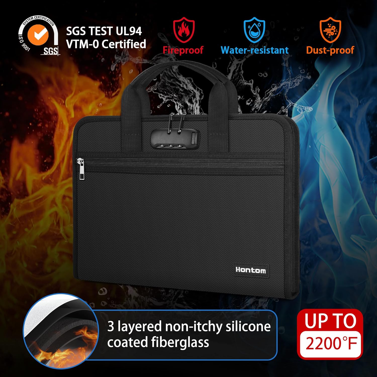 - Fireproof Material: Protect your important documents with the Hontom fireproof accordion file organizer. The organizer is made of three layers of high-quality flame-retardant, non-itchy silicone-coated fiberglass and can withstand temperatures up to 2200℉. It has passed the fireproof test (UL94 VTM-0 certified)