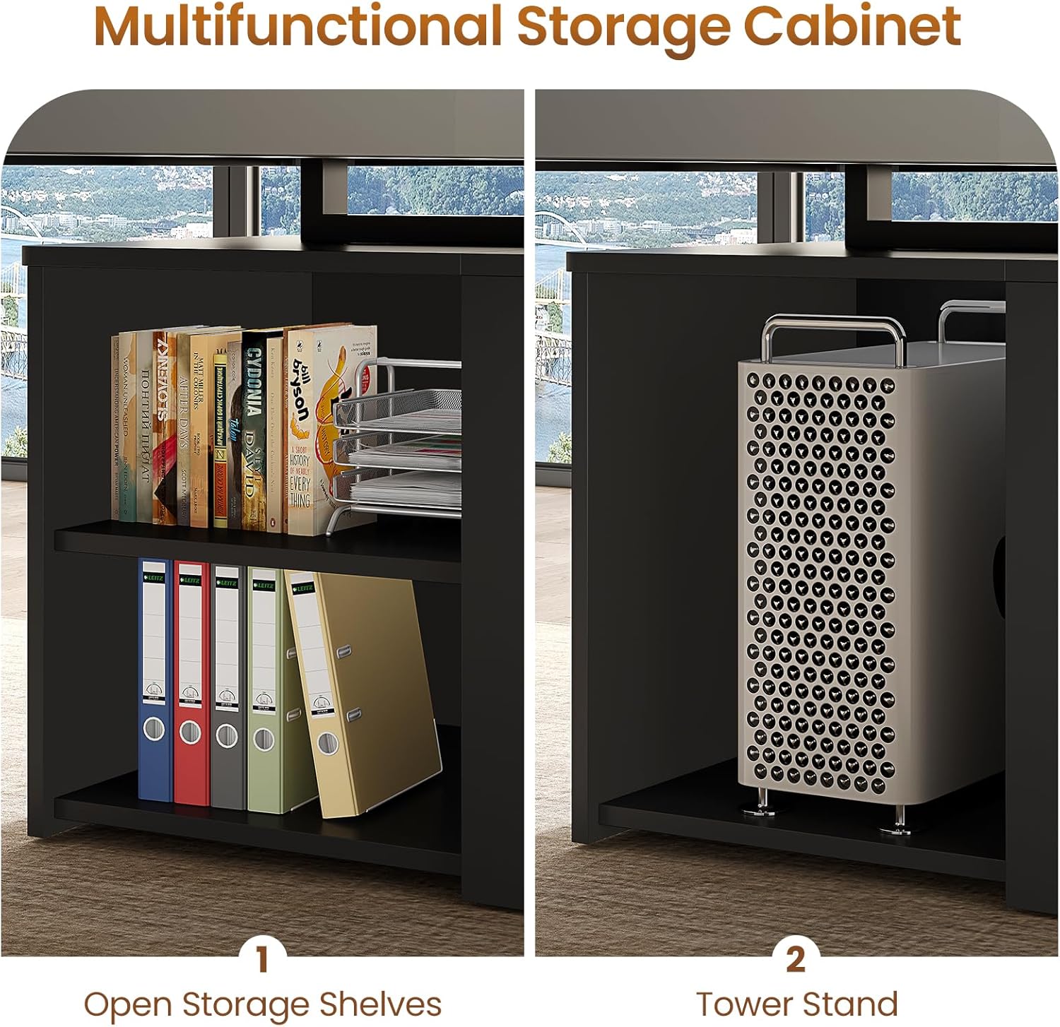 - 【Ample Storage Space】Equipped with storage cabinet, removable shelves, CPU stand, 2 storage drawers and 1 file drawer. The file drawer can hold letter/A4/legal files. The storage drawers and open shelves are perfect for storing any other office supplies. This executive desk creates a versatile workstation for all your needs.