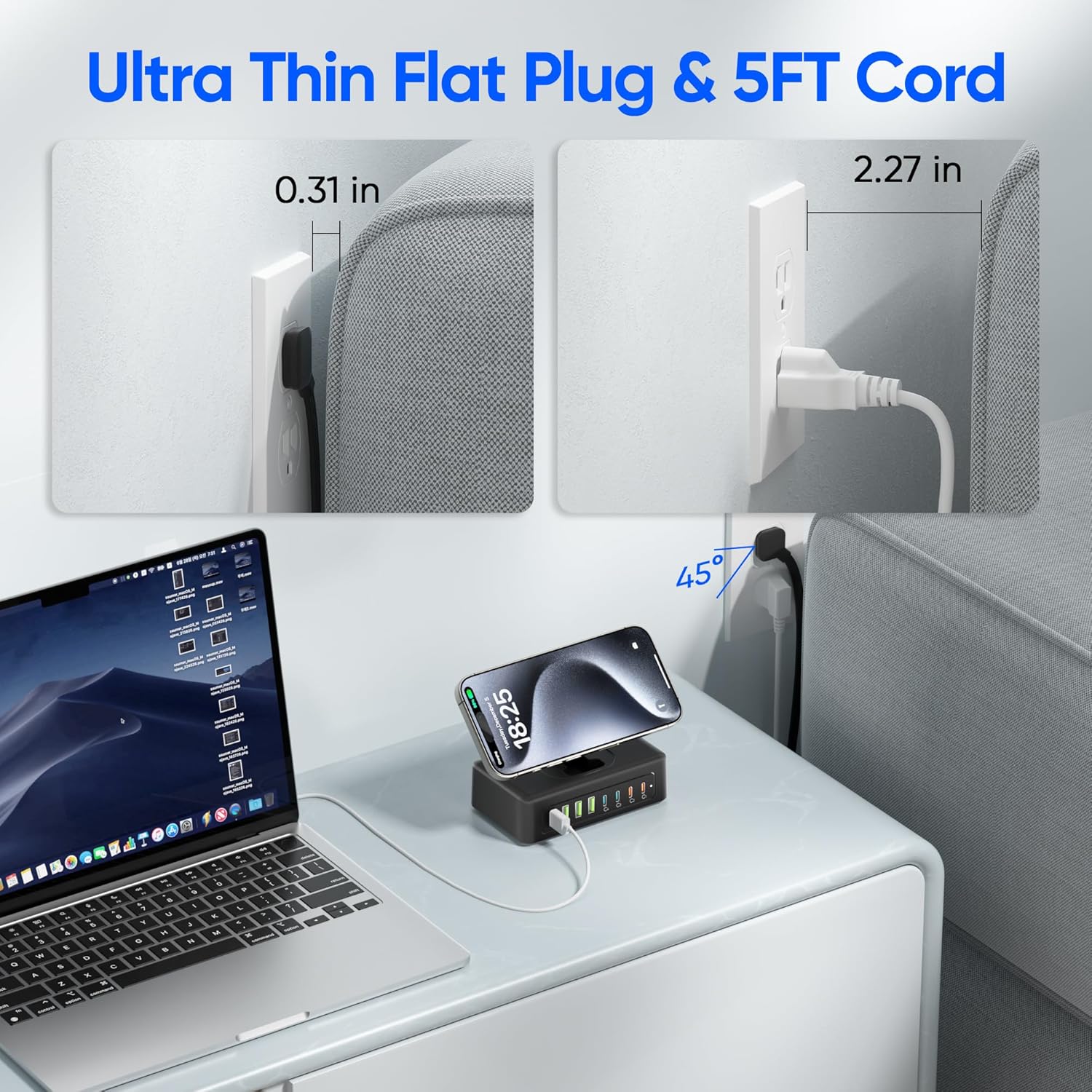 - Special Feature : 8USB, 2AC Outlets, 160W Fast Charging Station, Foldable magnetic Charger, 5FT Flat Extension Cord