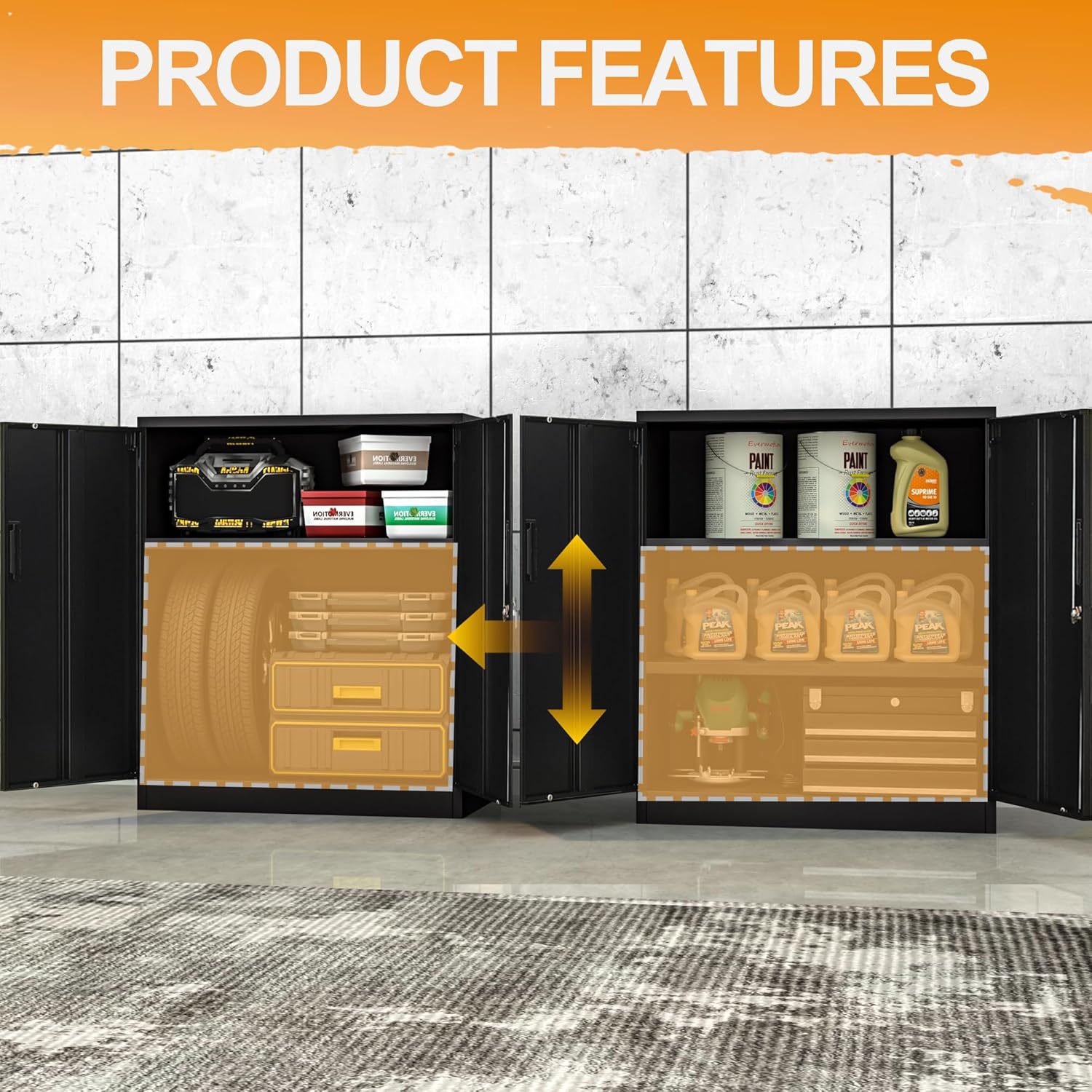 - Adjustable shelf height: The two adjustable shelves of this metal storage cabinet offer adaptability and convenience. No matter what your storage needs are, you can create a unique storage space.