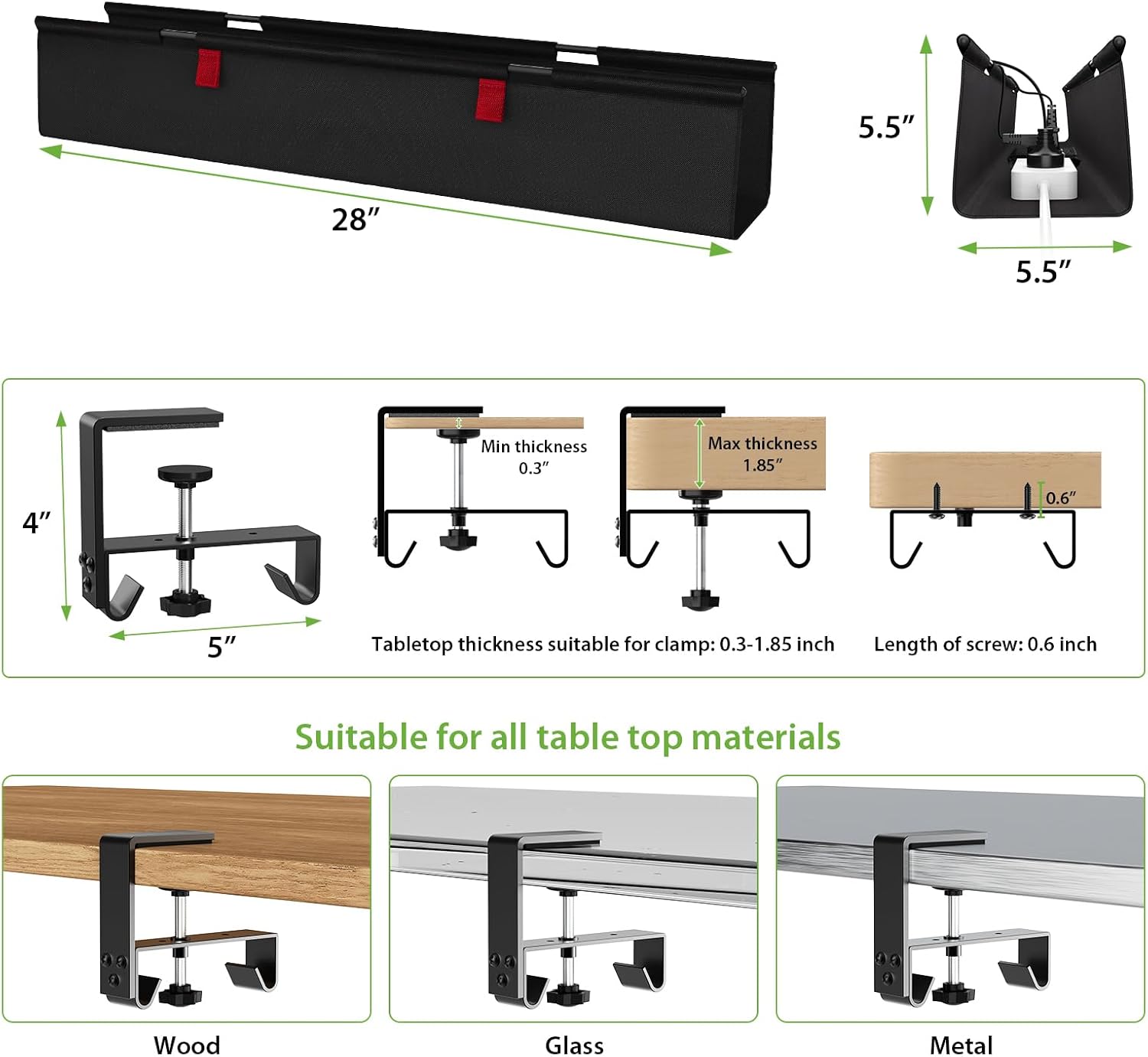 KEEGH No Drill Under Desk Cable Management Tray - 28" Cord Management Under Desk - Clamp/Screw Mount - Support Upto 70lbs - Fabric Wire Management - Gaming/PC Cable Tray Cord Hiders for Office/Home