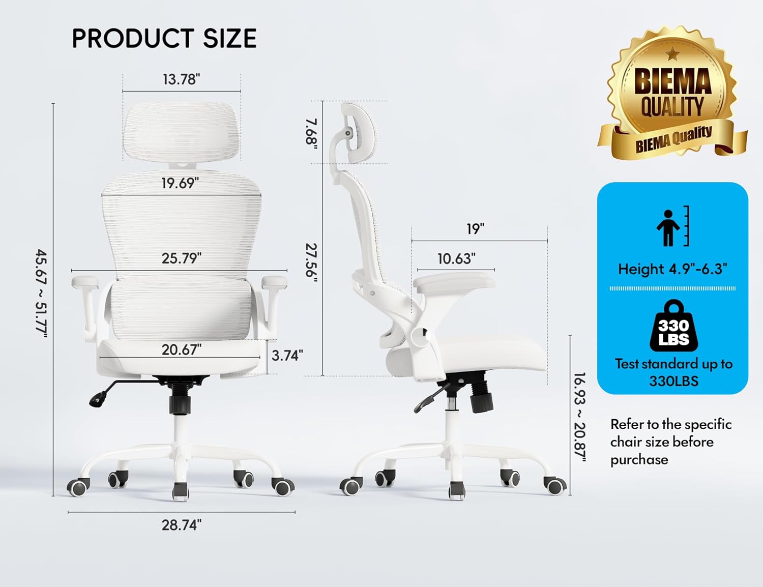 TRALT Office Chair - Ergonomic Office Chair with Back Support, Computer Chair - Home Office Desk Chairs, 330lbs Wide Seat Big and Tall Office Chairs with Headrest, Comfy Desk Chairs (White)
