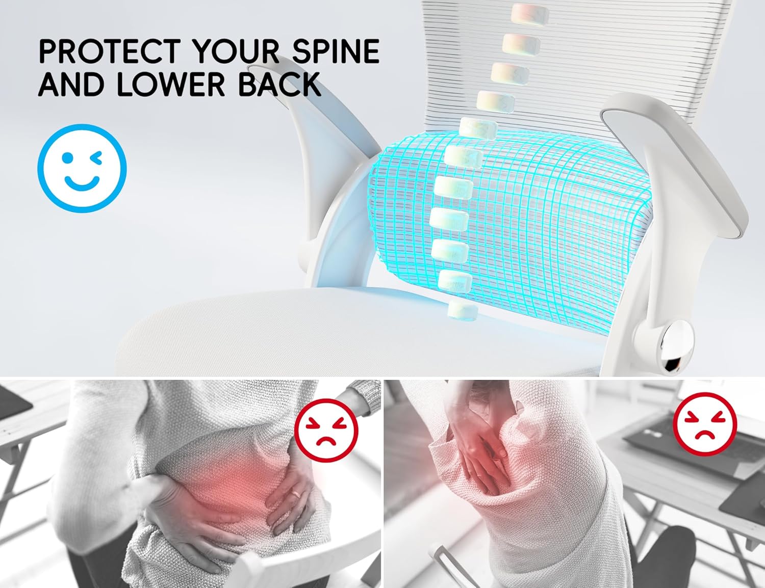 - Breathable Mesh Back for Cool, Sweat-Free Sitting:Stay cool even during marathon sessions! The high-density mesh back promotes airflow, keeping you comfortable and sweat-free—no more sticky backs in summer. Plus, the flexible mesh adapts to your movements, offering dynamic support without sacrificing breathability.