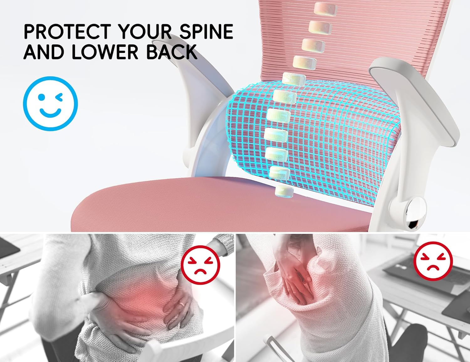 - Breathable Mesh Back for Cool, Sweat-Free Sitting:Stay cool even during marathon sessions! The high-density mesh back promotes airflow, keeping you comfortable and sweat-free—no more sticky backs in summer. Plus, the flexible mesh adapts to your movements, offering dynamic support without sacrificing breathability.