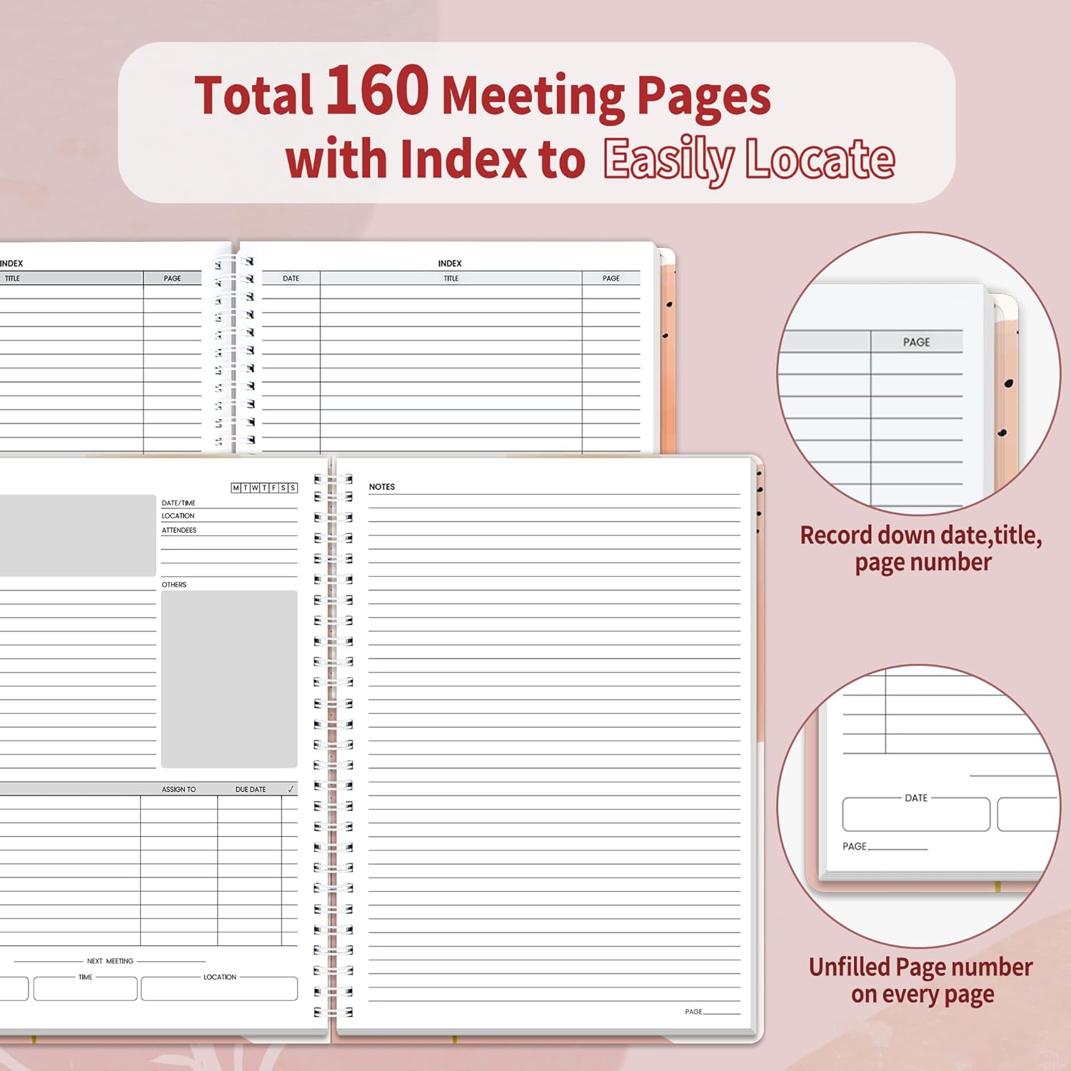 - Each 160 Pages Per Book: Provide ample space for note taking & planning and with the date section at the top for tracking them. With 160 pages for meeting minutes, the manager notebook will cover more than half a year, even in daily use. Also provides index pages for organizing this office planner.