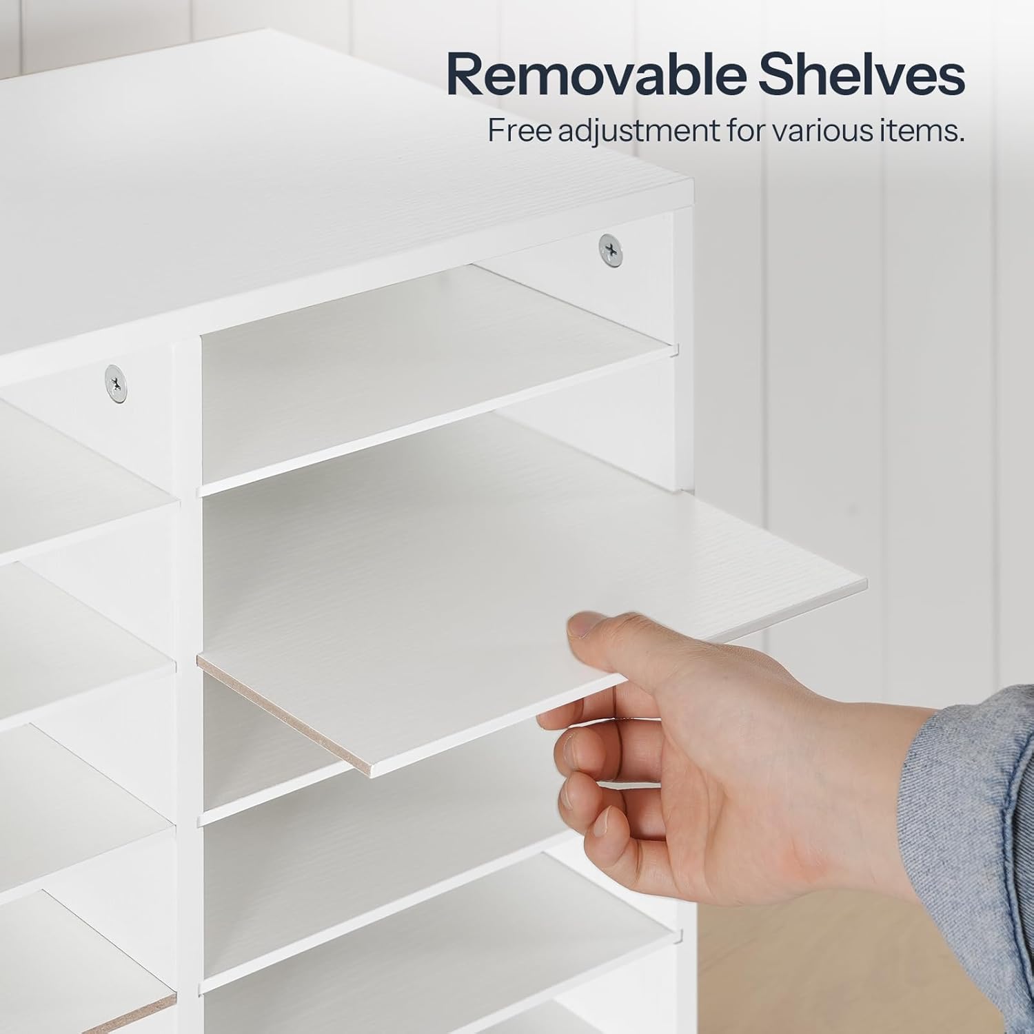 HOOBRO Literature Organizers, 12 Compartments Office Mailbox with Adjustable Shelves, Wood Countertop Literature Sorter for Office, Home, Classroom, Mailrooms Organization White WT12WF01
