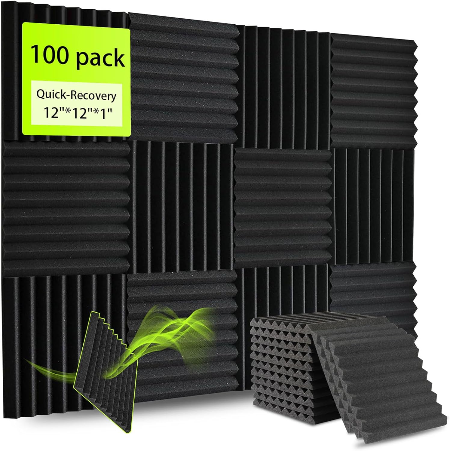 100 Pack Sound Proof Foam Panels for Walls 12x12x1 Inches, Wedges Acoustic Panels Sound Absorbing, Acoustic Foam Panels for Recording Studio, Home, Office, Easy Install, No Adhesive Included