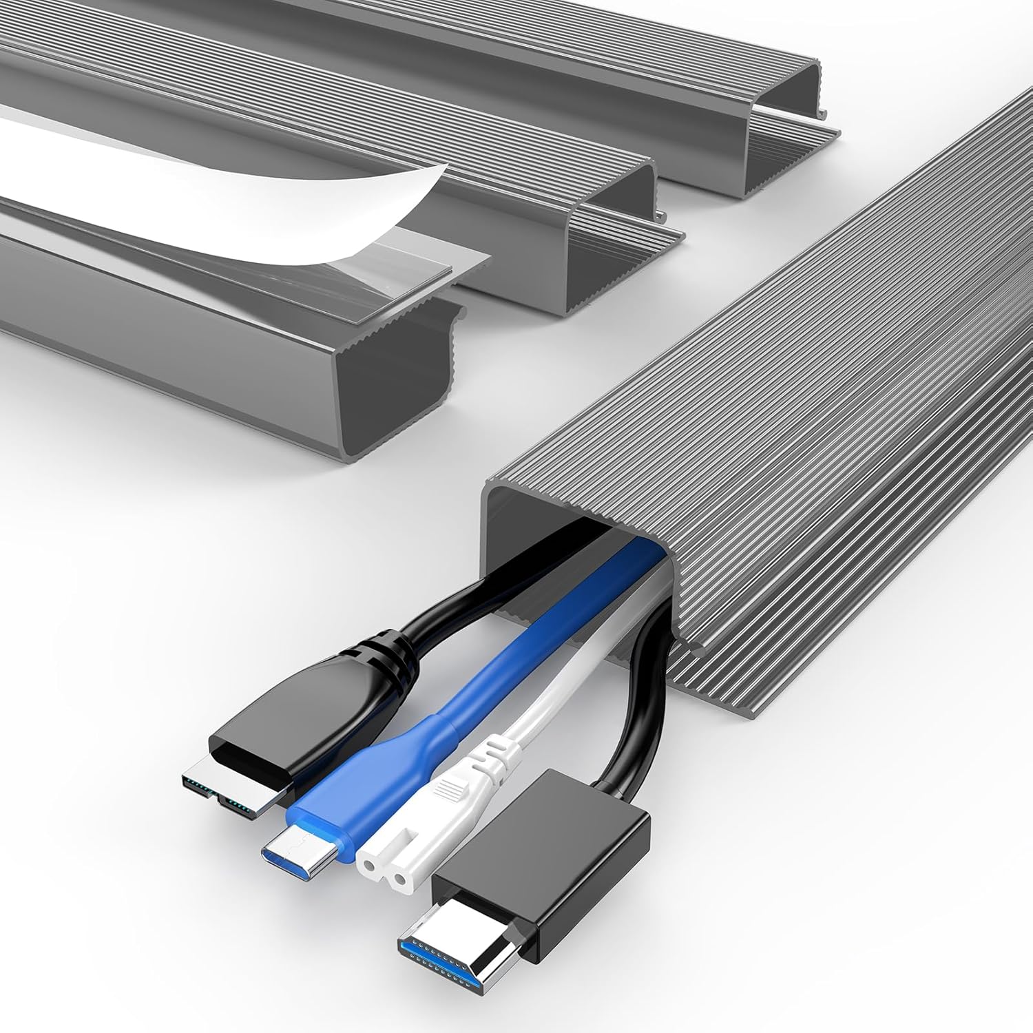 Delamu 62.8in Under Desk Cable Management, Safe & Tidy Cable Management Under Desks for Home & Office, 4 Pack Cord Organizer for Desk, Wire Organizer Kit, Grey