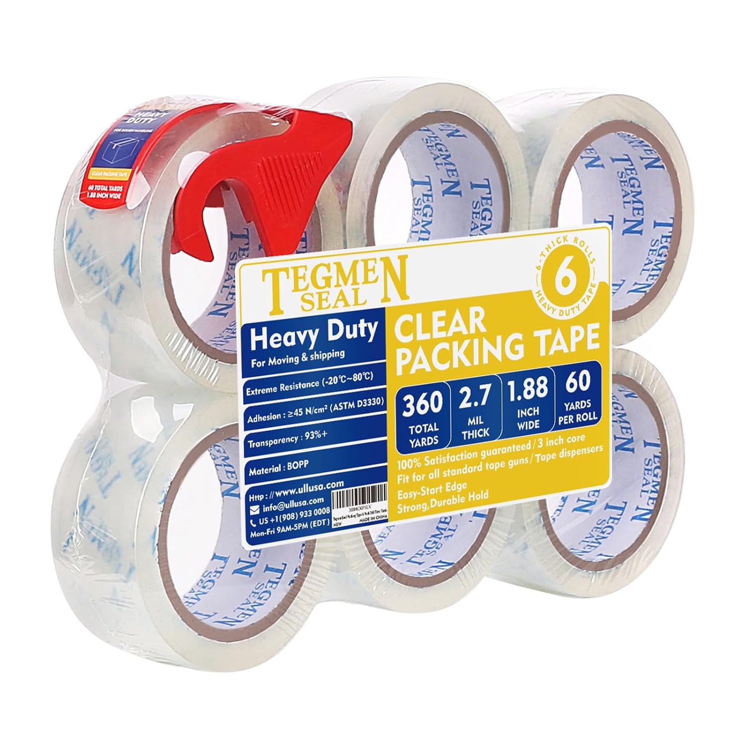 Heavy Duty Clear Packing Tape with Dispenser Combo for Shipping, Moving & Storage,Thicker Clear Packing Tape, 1.88 inches Wide, 60 Yards Per Roll, 6 Pack 360 Total Yards