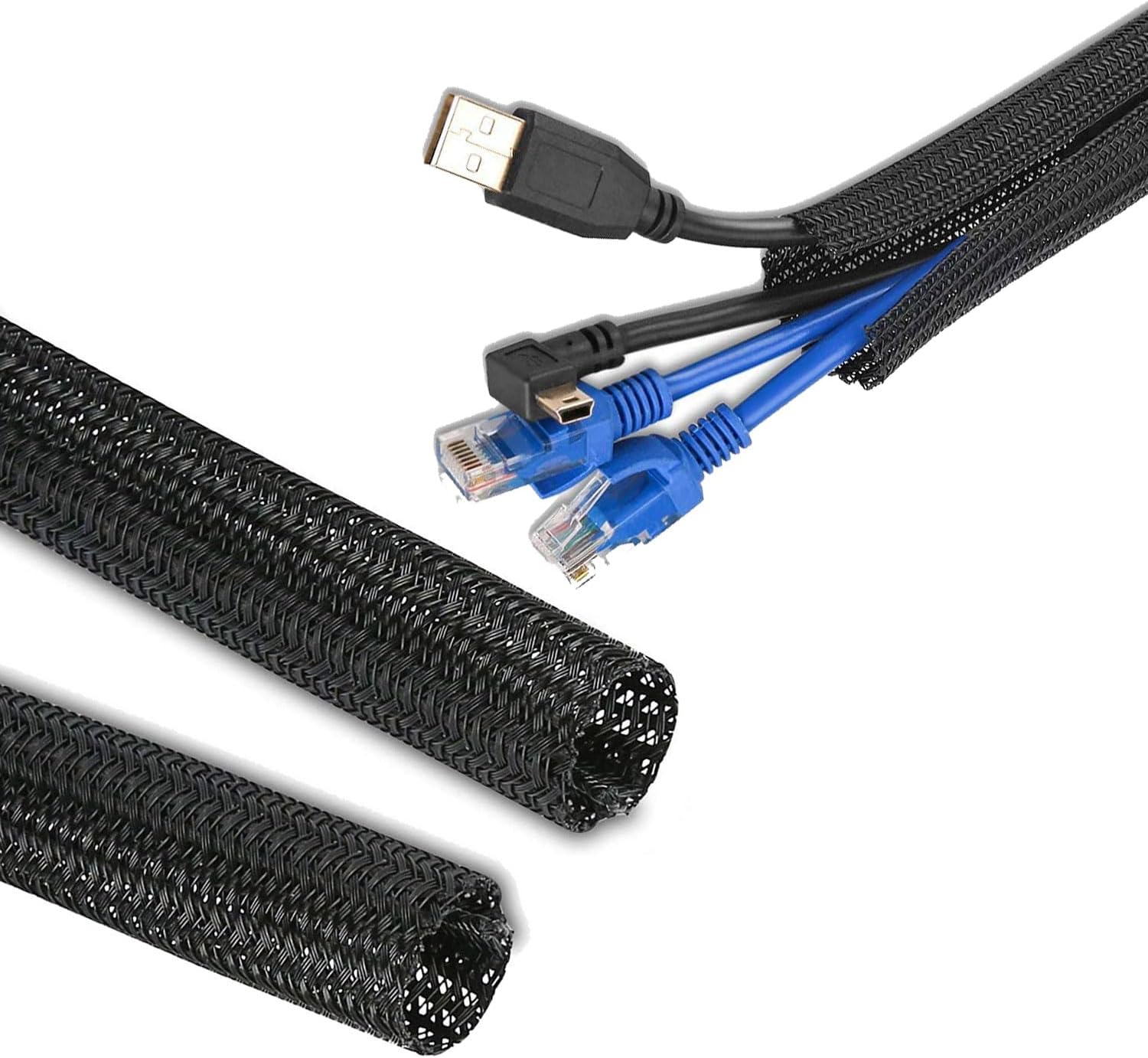 - 【Self-Wrapping Design + Easy Customization】 The QCSIW braided cable sleeve effortlessly wraps around multiple cables with its expandable design (0.75"-1.2" diameter). Simply cut to your desired length using household scissors—ideal for corners and tight spaces. Pro Tip: Briefly melt cut ends with a lighter to prevent fraying for a polished finish!