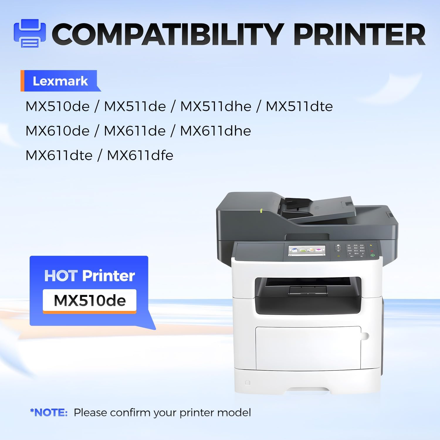 - Compatible Printer: Compatible with Lexmark MX510de MX511de MX511dhe MX511dte MX610de MX611de MX611dhe MX611dte MX611dfe Laser Printers.
