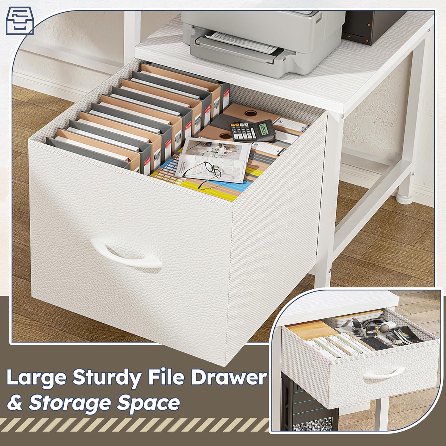 - 【 Ample Storage Space 】This computer desk features drawer storage and a dedicated printer compartment, intelligently organizing your desktop area to accommodate office and study essentials like keyboards, headphones, books, document holders, and pen cases – perfectly suited for home offices or bedrooms.
