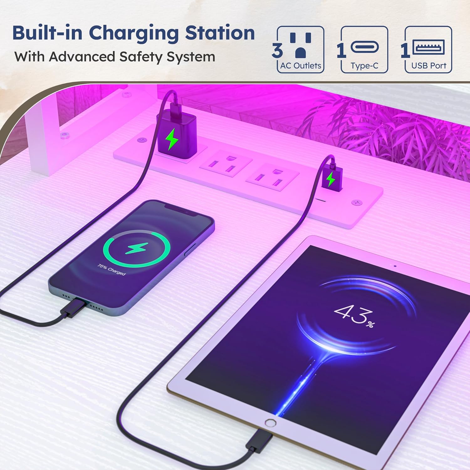 - 【Create a personalized space】 LED lights transforms this gaming desk into a personalized zone: switch between energizing blue/purple for competitive play and clean white light for focused productivity.