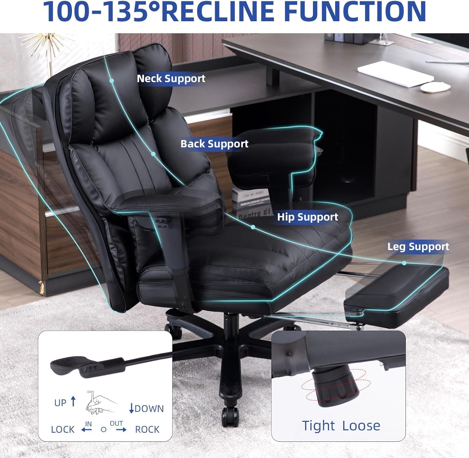 - πͺππππππππππ: Big and tall office chair features scratch-resistant PU leather. Task chair is easy to maintain. Big high back office chair filled with double-layer polyester foam and sponge seat and backrest provide unmatched comfort for all-day sitting.