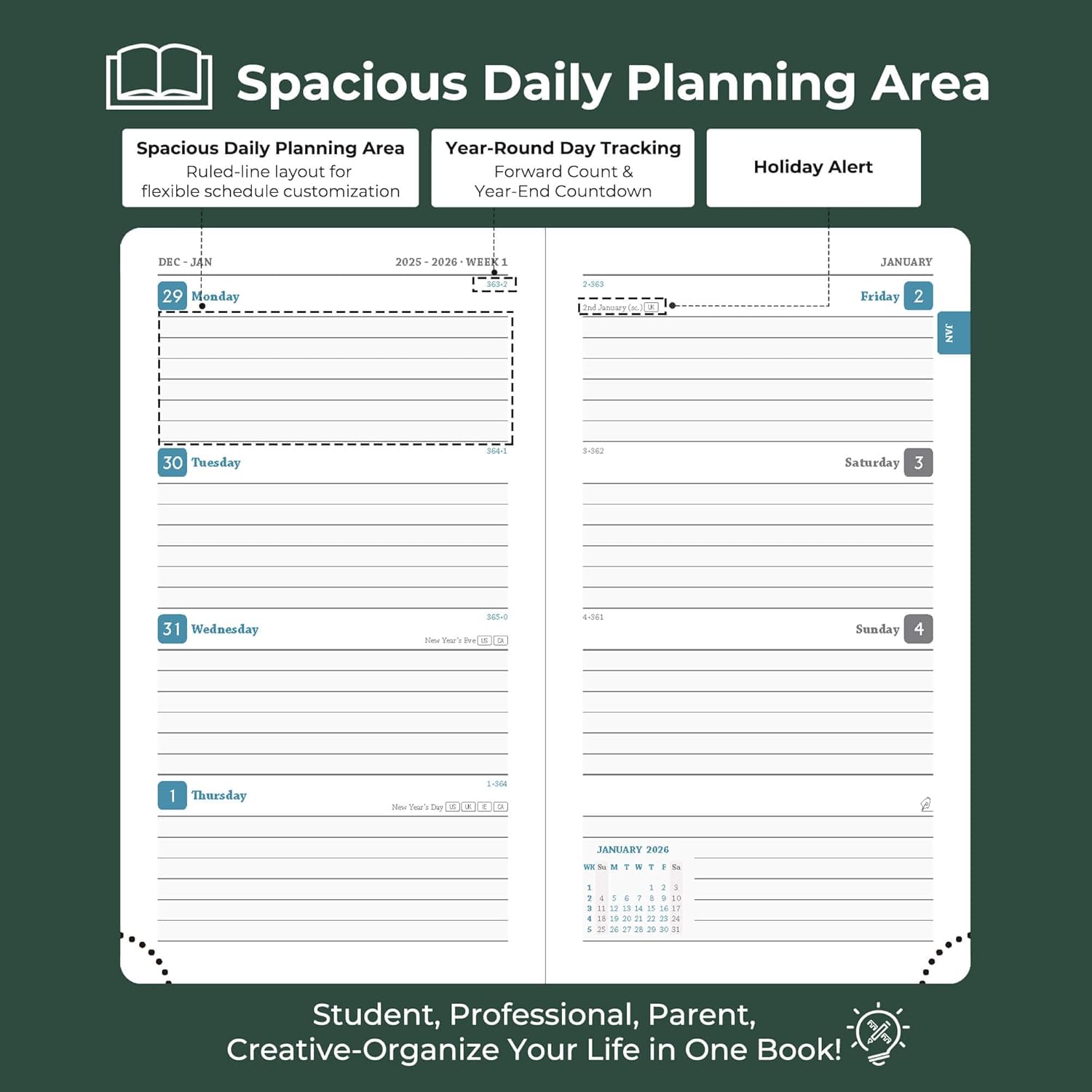 - Compatible 2026 Planner: Adaptable across lifestyles and roles. Professionals track workflows, conference logistics; students plan academic schedules, evaluations, and after-school; households manage vacation arrange & family activity