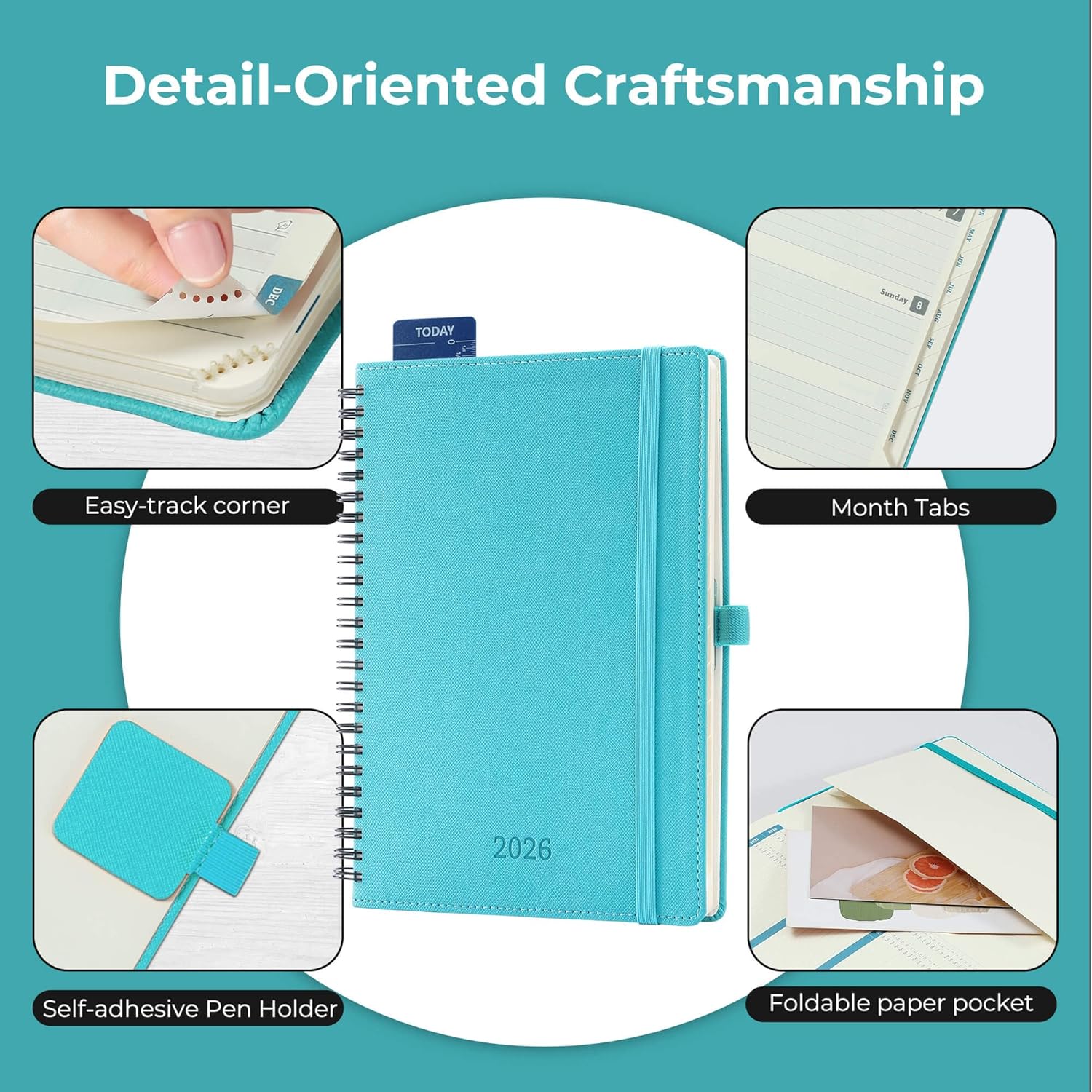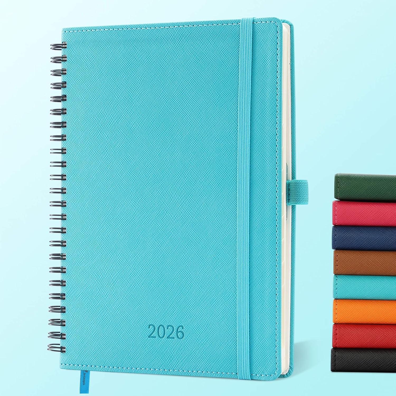 Planner 2026 Daily Weekly and Monthly,8.5"x6.5",12 Months Spiral Bound Calendar Agenda with Self-adhesive Pen Holder,2026 Appointment Book with Vegan Leather Soft Cover,Light Blue