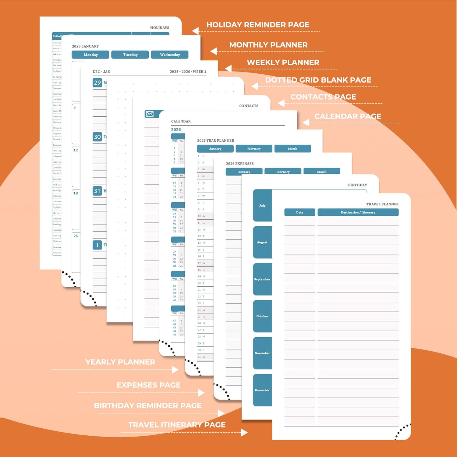 - Monthly Pocket Planner: Covers Jan.2026-Dec.2026. It adopts a double-page design for one week, so you can get a general overview without turning pages. The weekly planner page provides writing space for arrangement of daily tasks, priority management and activity records; the left side of the monthly plan marks important dates, and the right side plans special tasks