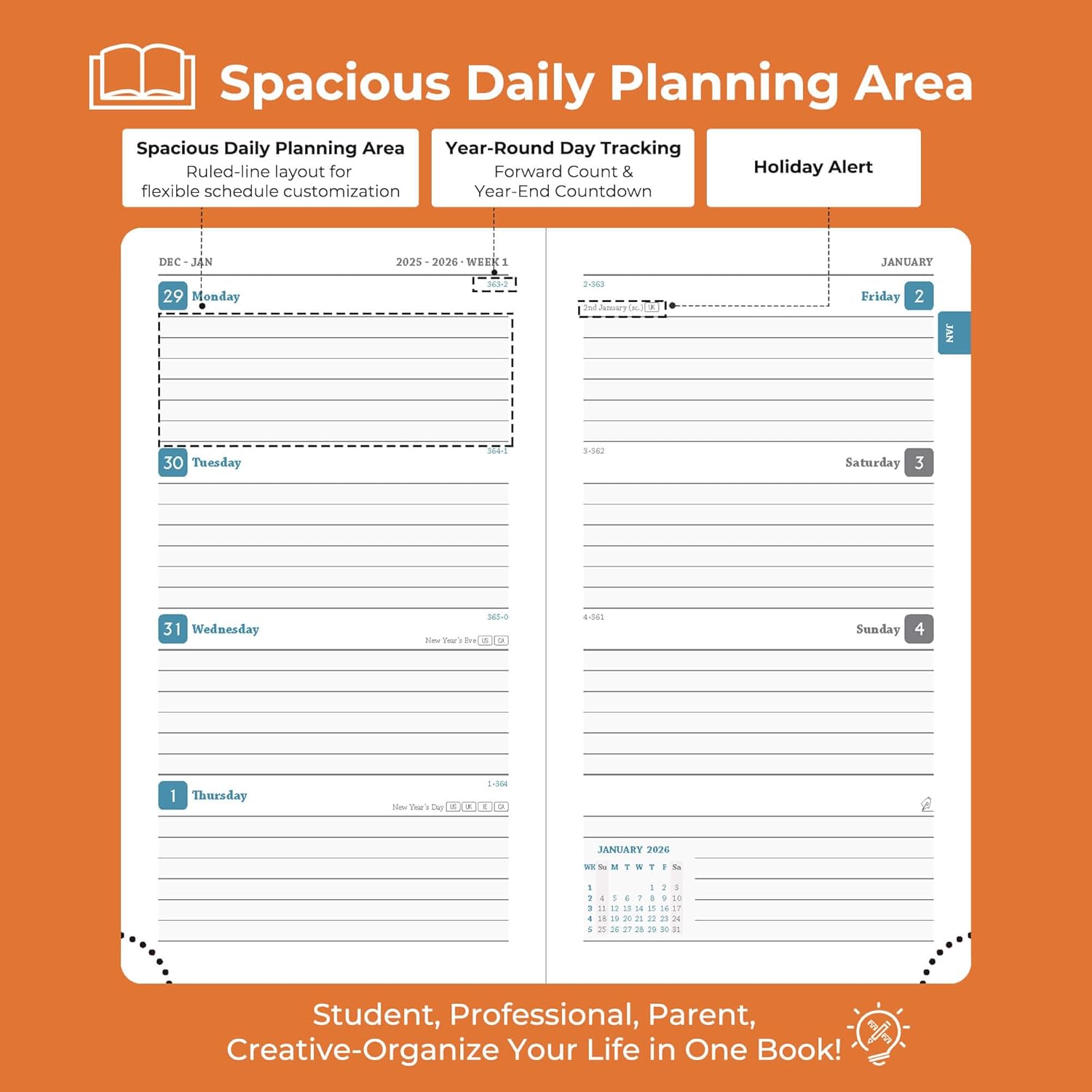 - Compatible 2026 Planner: Adaptable across lifestyles and roles. Professionals track workflows, conference logistics; students plan academic schedules, evaluations, and after-school; households manage vacation arrange & family activity