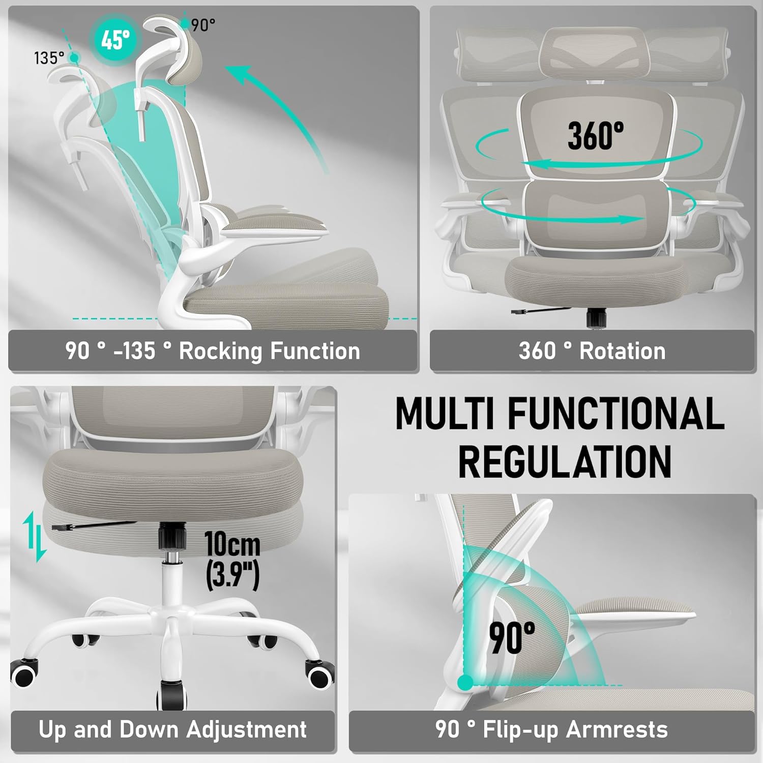 - 【Ergonomic Lumbar Support for Optimal Comfort】This high-back ergonomic office chair is designed with targeted lumbar support that aligns with the natural curve of your spine. The backrest with separate lumbar support can actively fit your waist, providing scientific ergonomic support to reduce back pain during long hours of sitting.