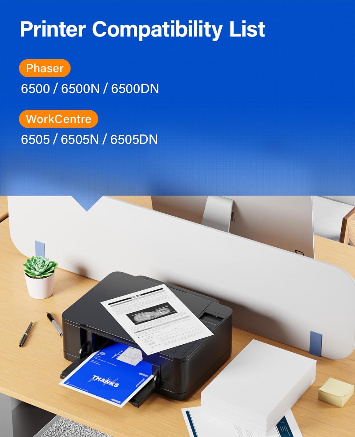- Compatible Devices : Compatible Printer: Compatible with Xerox Phaser Series: 6500,6500N,6500DN, WorkCentre Series: 6505, 6505N, 6505DN Printer; Compatible Toner Model: 106R01597, 106R01594, 106R01595, 106R01596 Compatible Printer: Compatible with Xerox Phaser Series: 6500,6500N,6500DN, WorkCentre Series: 6505, 6505N, 6505DN Printer; Compatible Toner Model: 106R01597, 106R01594, 106R01595, 106R01596