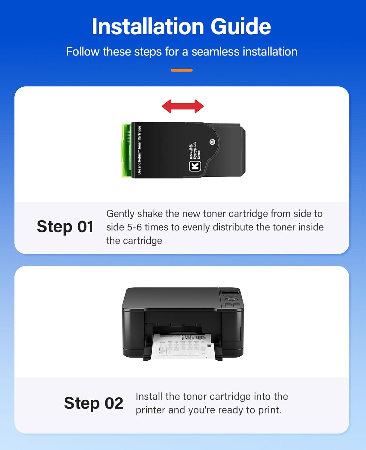 - Latest Chip Version: The KingKJ toner cartridge is equipped with the latest built-in chip, ensuring perfect compatibility between each toner cartridge and the printer. When using the KingKJ toner cartridge to print for your printer, you will receive clear text and sharp images. All KingKJ toner cartridges have undergone strict quality testing to ensure stability and reliability, and have obtained ISO9001 certification. In addition, our product team offers 2-year warranty, 24-hour customer service, and replacement services for defective products.