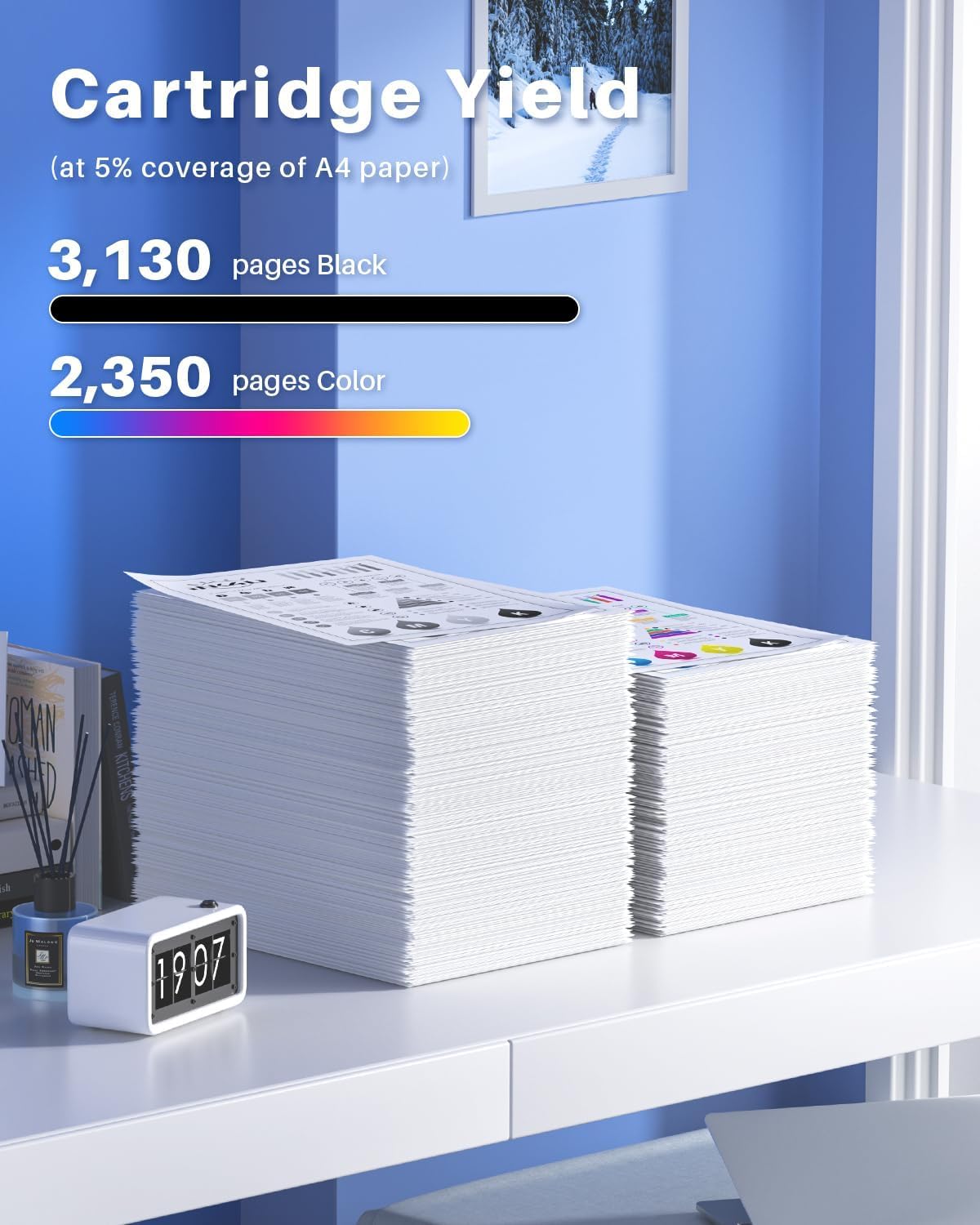 - 4. High-capacity 067H toner cartridge yields 3130 pages in black and can print 2350 pages in color, based on 5% coverage of A4 paper
