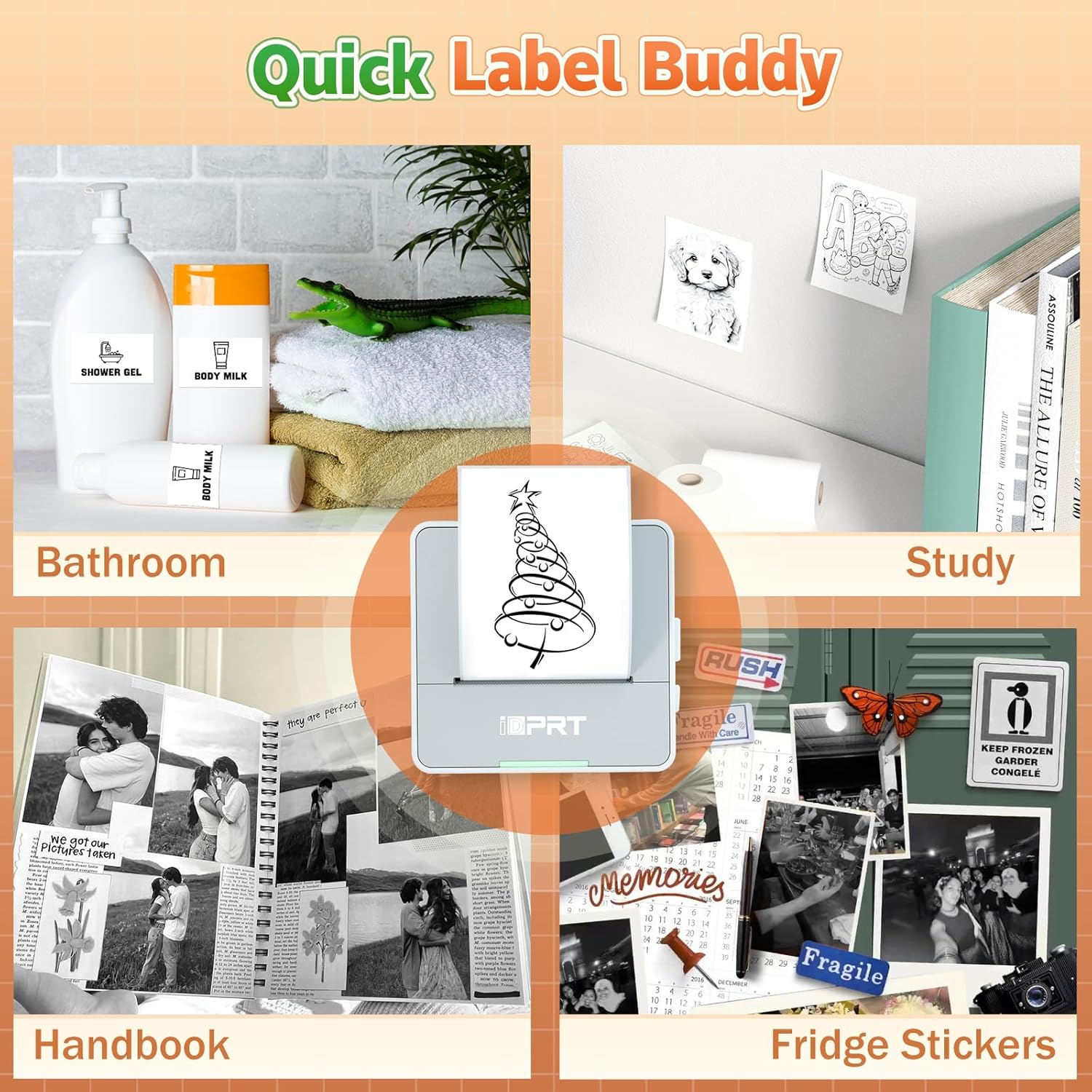 - Upgraded Paper Tray - The built-in paper tray of the mini sticker printer can reduce paper jams, improve printing efficiency, and achieve faster paper output