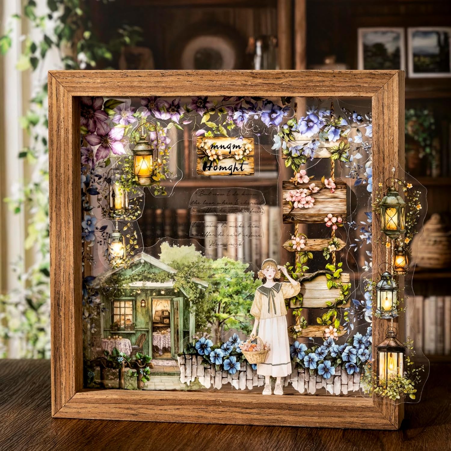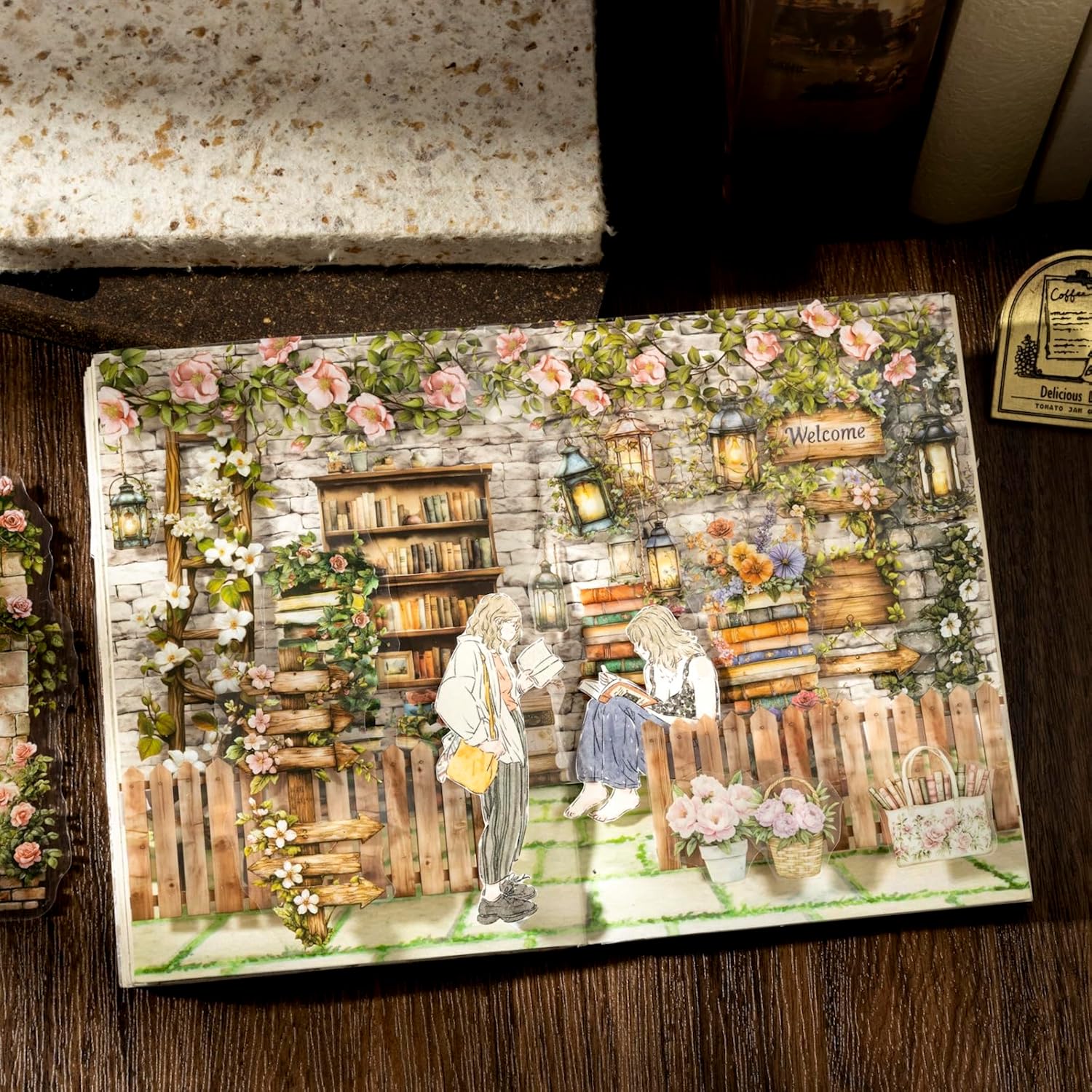 - Whimsical Book Garden Style: 6 packs, each with 10 unique designs, total 120 stickers featuring vintage books, floral ladders, wooden signboards, and elegant garden scenes to enrich your scrapbooks and journals
