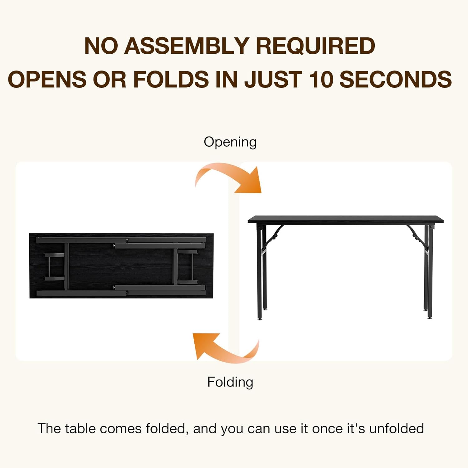 - ππ‘π’ ππ¦π¦ππ πππ¬ π₯ππ€π¨ππ₯ππ - π₯ππππ¬ π§π’ π¨π¦π β Enjoy the convenience of a folding table that arrives fully assembled. With an integrated design of both desk surface and frame, simply open the box, unfold, and start using immediatelyβperfect for those who value simplicity and time.
