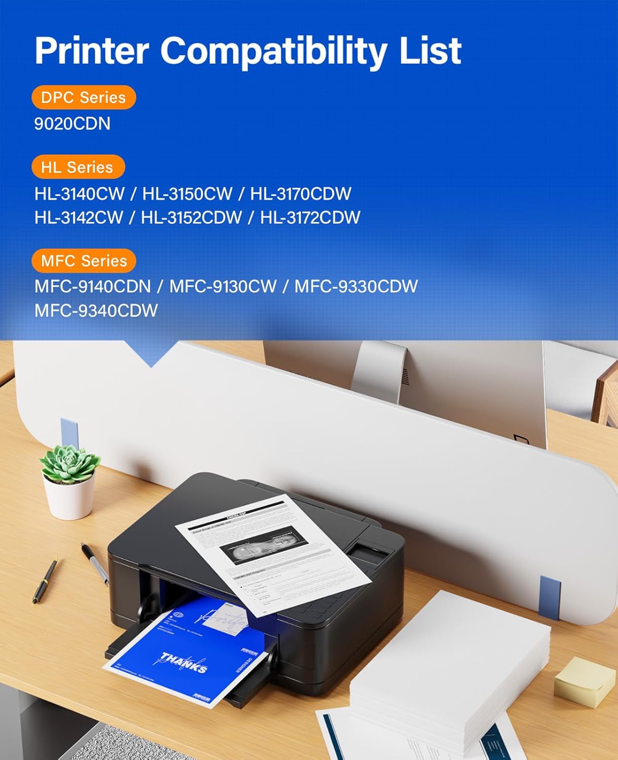 - Printer Compatibility:Compatible for Brother HL-3140CW, HL-3150CW, HL-3170CDW,HL-3142CW, HL-3152CDW, HL-3172CDW,DCP-9020CDN,MFC-9140CDN, MFC-9130CW,MFC-9330CDW, MFC-9340CDW Laser Printer.