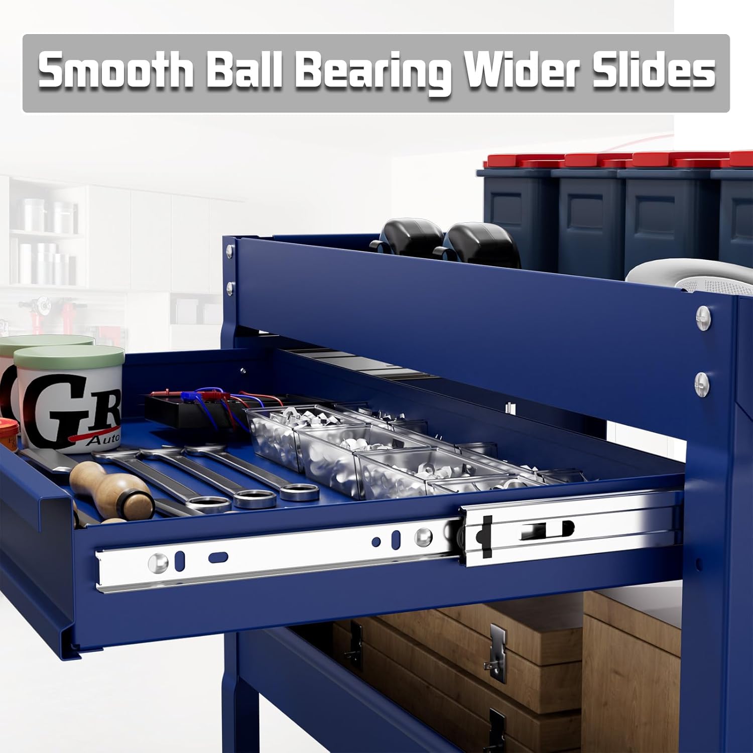 3 Tray Rolling Tool Cart, 400 LBS Capacity Mechanic Tool Carts on Wheels, Heavy Duty Utility Cart with Drawers, Metal Work Cart for Garage, Warehouse and Repair Shop, Blue