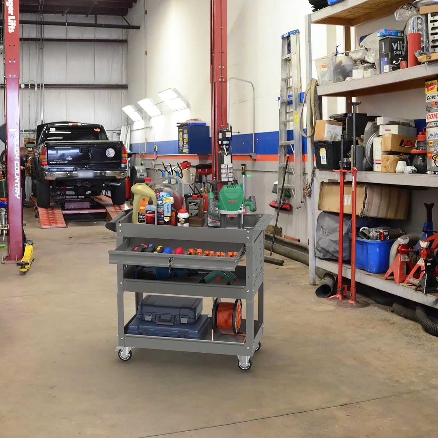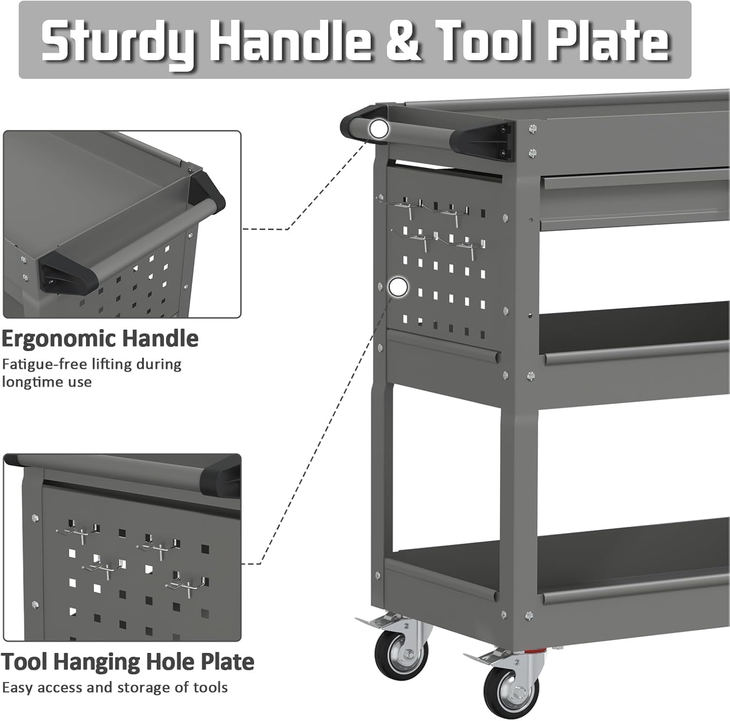 - 【Wide Range of Applications】This tool cart with wheels can help you easily store or transport tools, boxes, supplies, heavy items and more, very suitable for Auto Repair, Warehouse, Garage. You can also give it as a gift to your friends or family, which is also a great option.