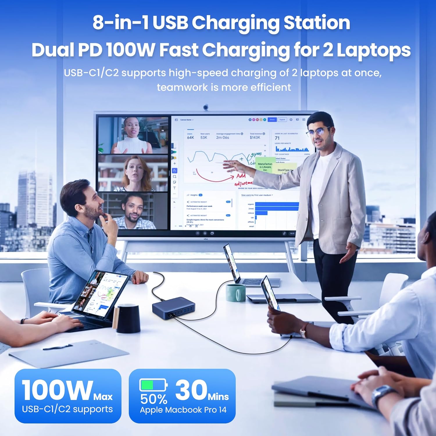 - Special Feature : USB C Charger 105W Charger 65W Laptop Charger for MacBook Pro/Air/iPad Pro/iPhone Chip Technology Charger Station ,Travel, 8 in 1 USB-A and USB-C port, Fast Charging, Charging Indicator, Short Circuit Protection, Compatible with Steam Deck, Laptops, Tablets, Smartphone, and Smart watchesTravel, 8 in 1 USB-A and USB-C port, 65W Fast Charging, Fast Charging, Charging Indicator, Short Circuit Protection, Compatible with Steam Deck, Laptops, Tablets, Smartphone, and Smartwatches USB C Charger 105W Charger 65W Laptop Charger for MacBook Pro/Air/iPad Pro/iPhone Chip Technology Charger Station ,Travel, 8 in 1 USB-A and USB-C port, Fast Charging, Charging Indicator, Short Circuit Protection, Compatible… See more
