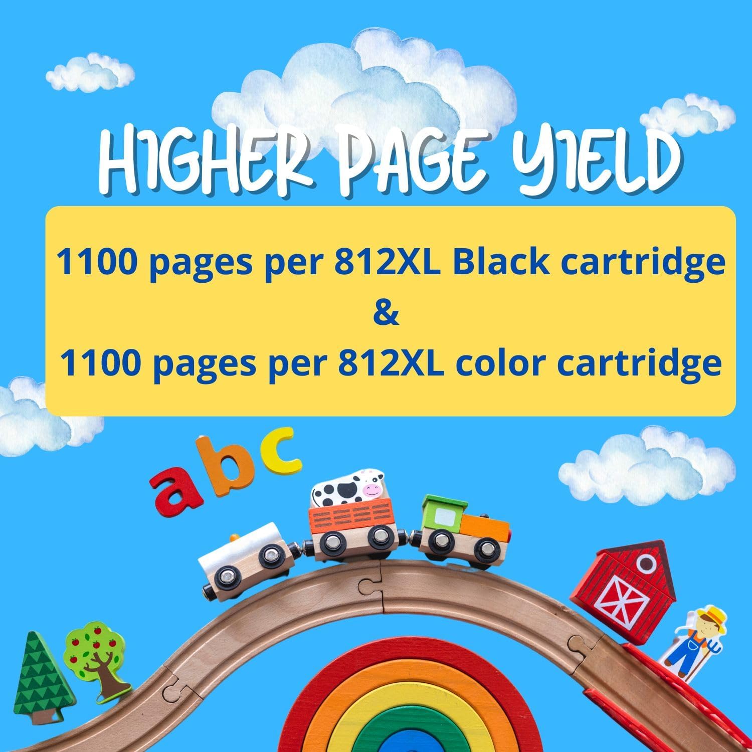 - Higher Page Yield: Up to 1100 pages per 812XL Black cartridge & 1100 pages per 812XL color cartridge (based on 5% coverage)