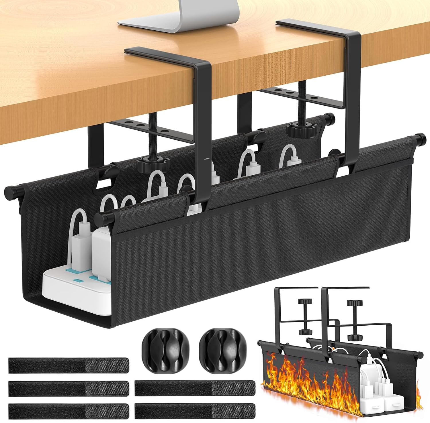 - 🔥【900D Flame-Retardant Fabric】: Newly upgraded 900D double-layer fabric (not cheap metal!) completely hides messy wires while resisting dust and fire hazards. the cable tray has bottom support for loading heavy weight keep elegant shape,Safer for homes with kids/pets vs. traditional cable trays