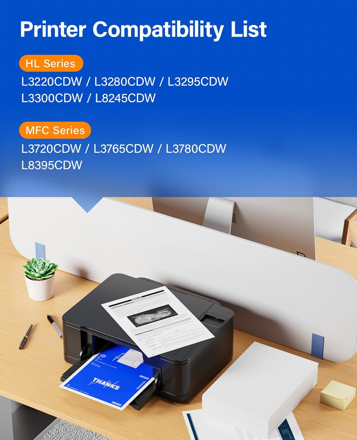 - Compatible Devices : Compatible for Brother HL-L3220CDW, HL-L3280CDW HL-L3295CDW, HL-L3300CDW, HL-L8245CDW MFC-L3720CDW, MFC-L3765CDW MFC-L3780CDW, MFC-L8395CDW Laser Printer Compatible for Brother HL-L3220CDW, HL-L3280CDW HL-L3295CDW, HL-L3300CDW, HL-L8245CDW MFC-L3720CDW, MFC-L3765CDW MFC-L3780CDW, MFC-L8395CDW Laser Printer