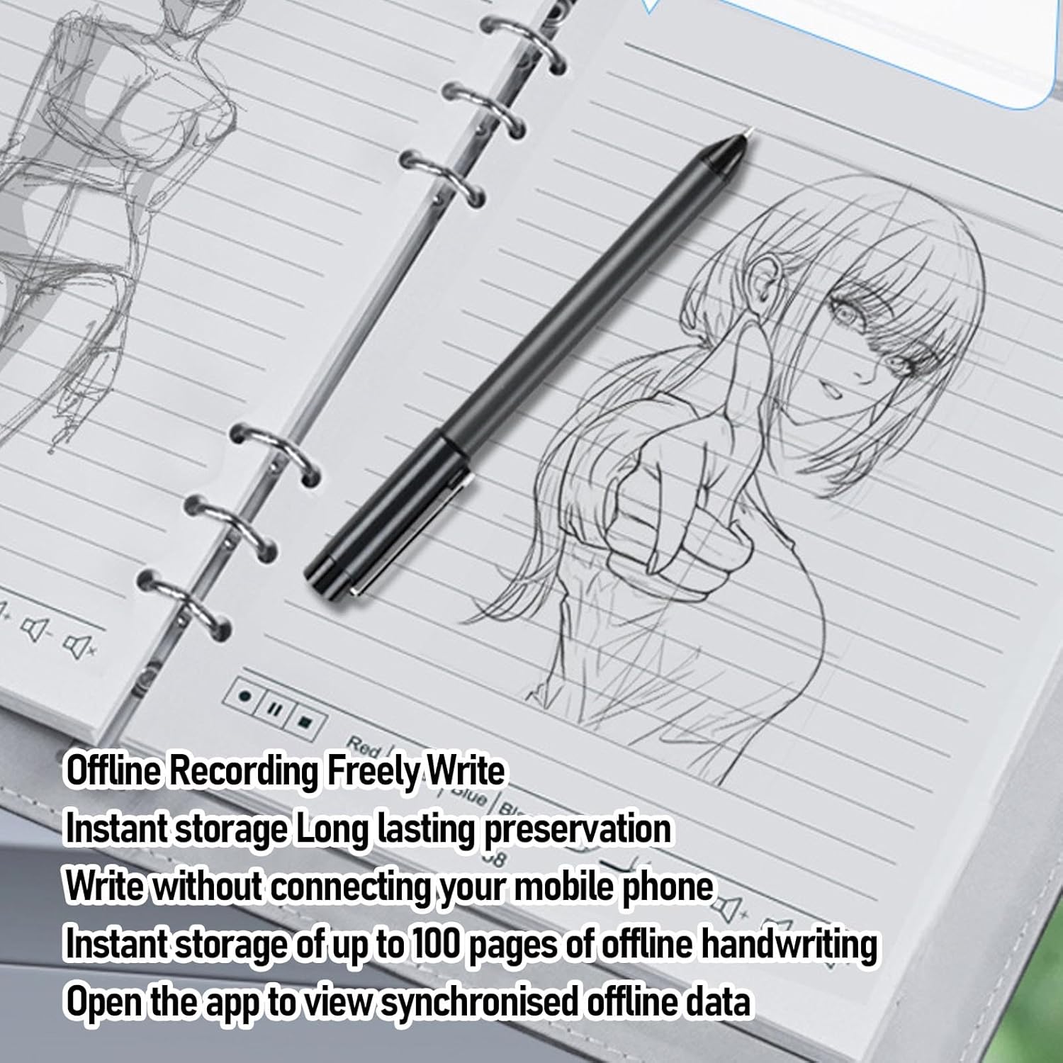 - Real Time Recording and Syncing: The smart pen allows you to write smoothly from 360° angle, catching your creative work with accuracy and storing it digitally on your device. This feature enables real time recording and sharing of your notes. Simply jot down your thoughts on paper, and they will be digitized and stored, allowing you to view your notes on your smartphone without the need to carry a physical notebook.