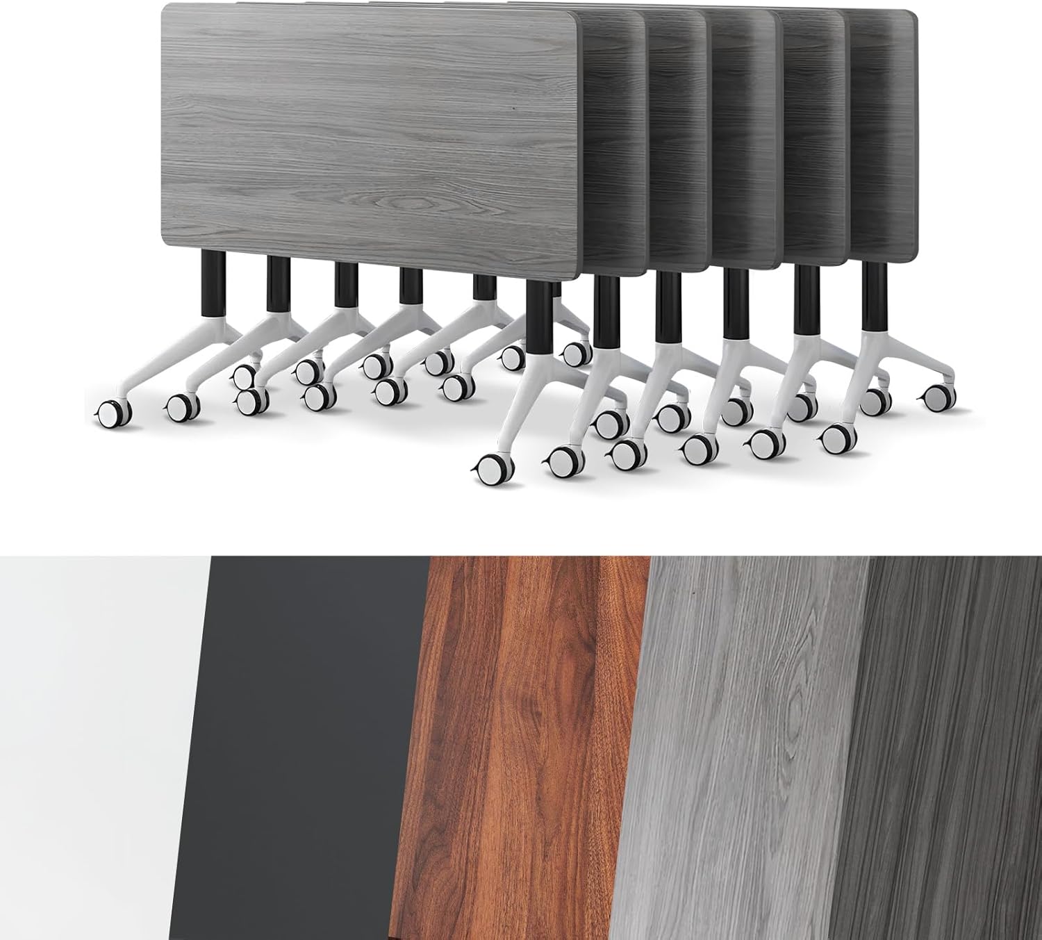 Conference Room Table, Folding Conference Tables,Thicken Grey Tabletop,Flip Top Wooden Seminar Meeting Room Table for Conference Room Offices (6, Grey, 70.8”)