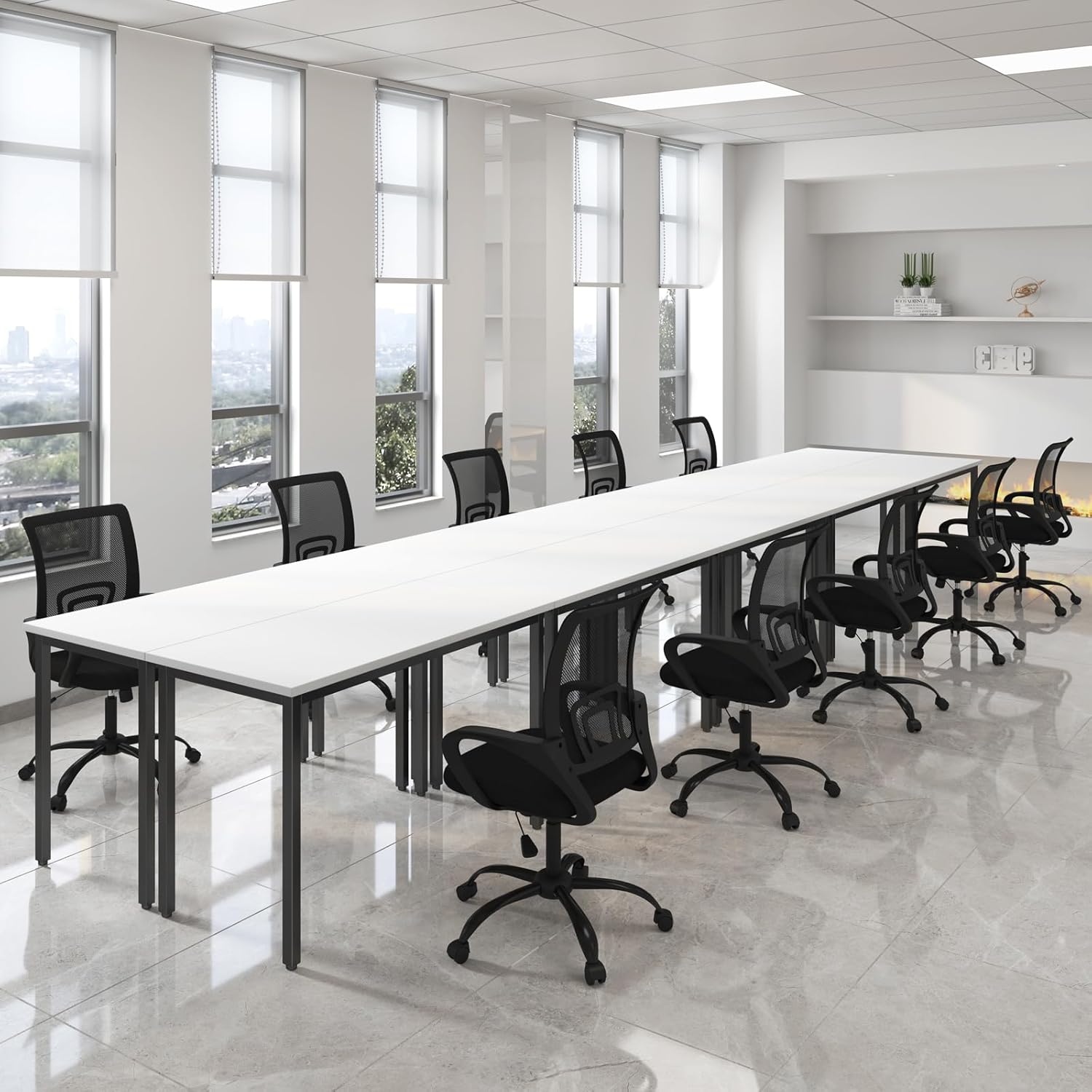 - Perfect Size: 10PCS conference tables accommodate up to 24 people. Totally Measuring 275.5"D x 47.2"W x 29.5"H. Dimension of each single desk is 55.1" L x 23.6" W x 29.5" H for random combination. Stylish and Sleek design ideal for any office, conference room, meeting room and study room
