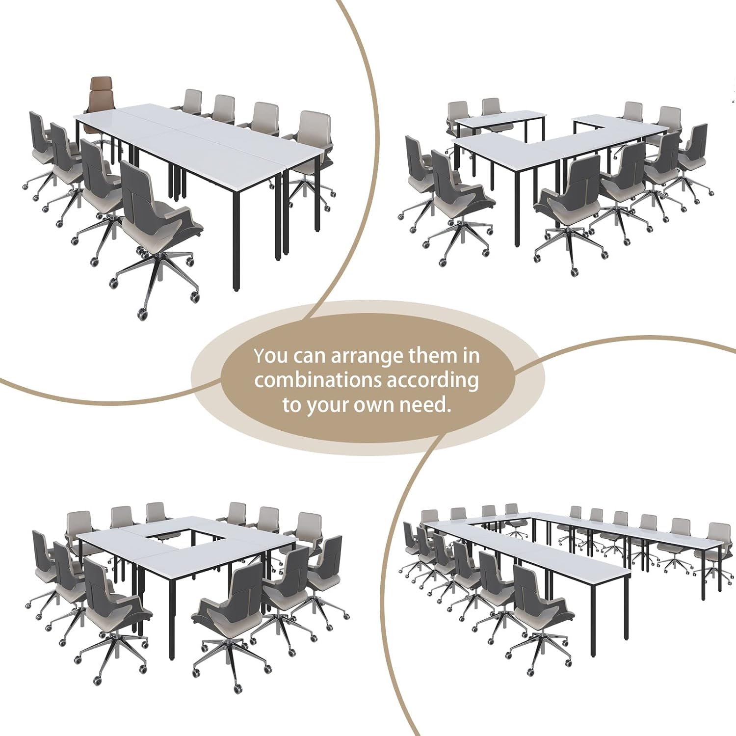 - Meet Different Needs -You can arrange them in any combination according to your own needs. Put together as a large meeting room table, or separate as classroom tables, training tables, and printer or podcast table, providing plenty of space for your daily working gear and taking full advantage of your abode office workspace