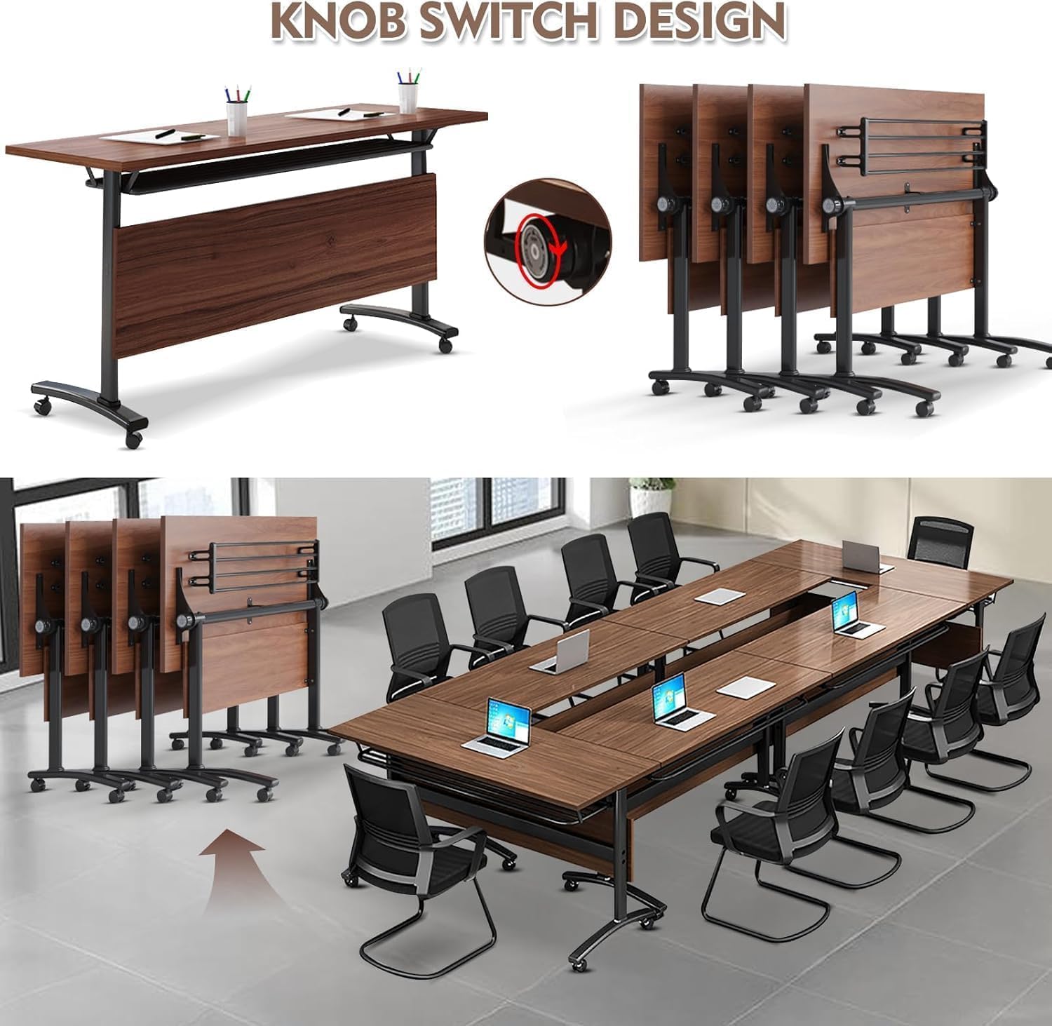 - ✅【ONE-CLICK FOLDING CONFERENCE TABLE】 Group room tables are an excellent choice for conference rooms, reception rooms and training rooms. Just turn the knob and the table can be easily flipped, saving a lot of space and making it easy to store and carry.