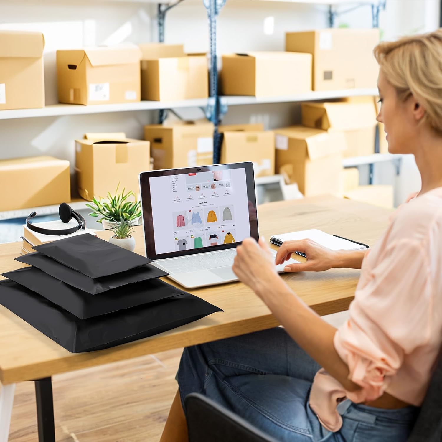 UCGOU 100 Pack Black Poly Mailers Variety Size Pack, 10x13 Inch & 12x15.5 Inch & 14.5x19 Inch &19x24 Inch, 25 PCS Each Shipping Bag, Self-sealing Adhesive Mailers Assorted Sizes for Small Business