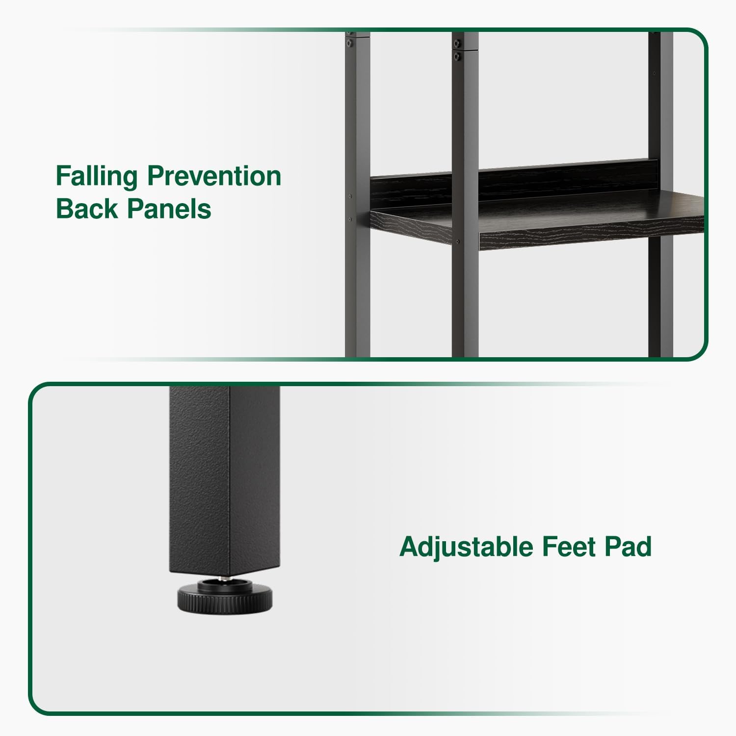 - 【ADJUSTABLE FEET】Equipped with 8 adjustable plastic feet to compensate for uneven floors and protect your flooring when moving the bookshelf.