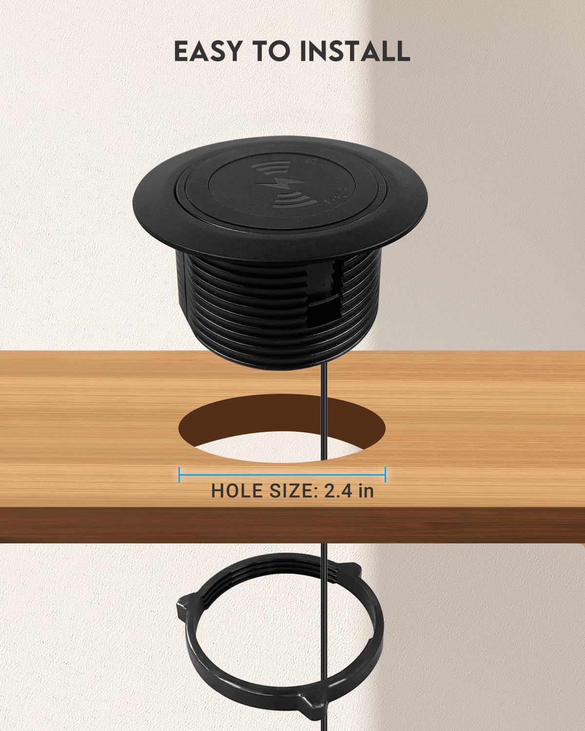 - Easy to Install: With only a 2.4-inch hole spacing, you can quickly install the phone charger. We prepare the standard instruction manual for your reference, so that you can complete the installation more quickly. Please note: This desktop charger is suitable for tables with a tabletop thickness of less than 1.1 inches