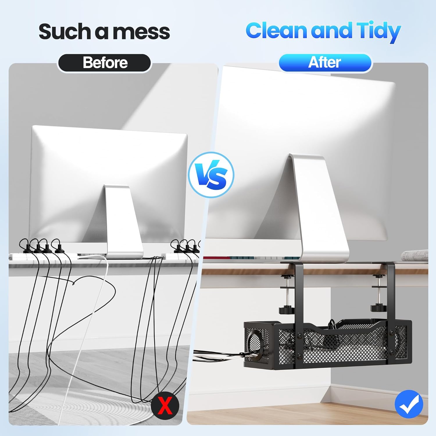 - ššØ šššš ššØ šš«š¢š„š„š¢š§š ššØš„šš¬ - Instead of damaging to your desk, our under desk cable management tray can be hanged directly to desk frames and change its position easily as you like, unlike others screw installation. It excellent to install a clamp on any wood, glass, or any material on your desk.