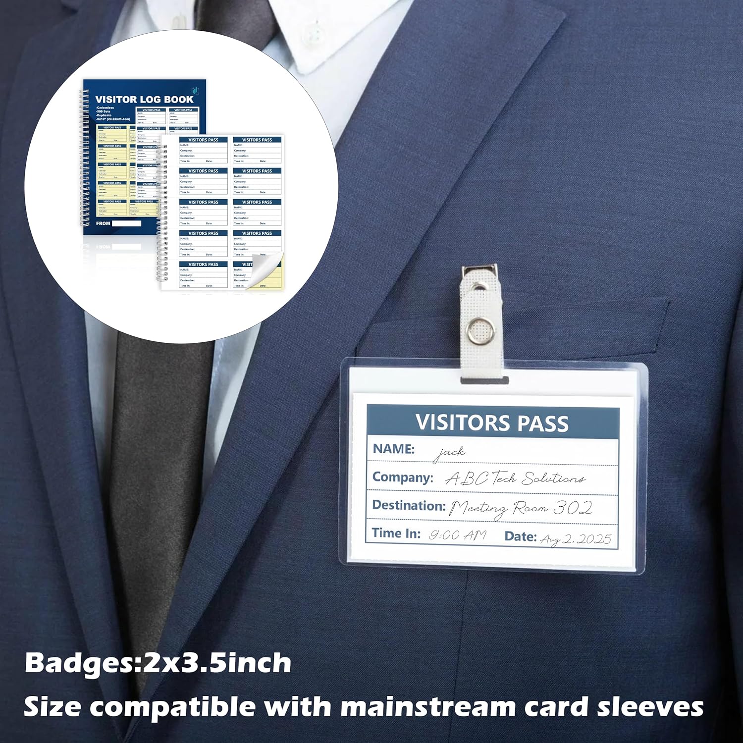 - 🔖 500 Tear Off Visitor Badges with Full Info Fields:Each 8x10 inch sheet includes 10 perforated 2x3.5 inch visitor badges totaling 500 per book Every badge includes space to record name company destination date and time making it easy to track and identify guests