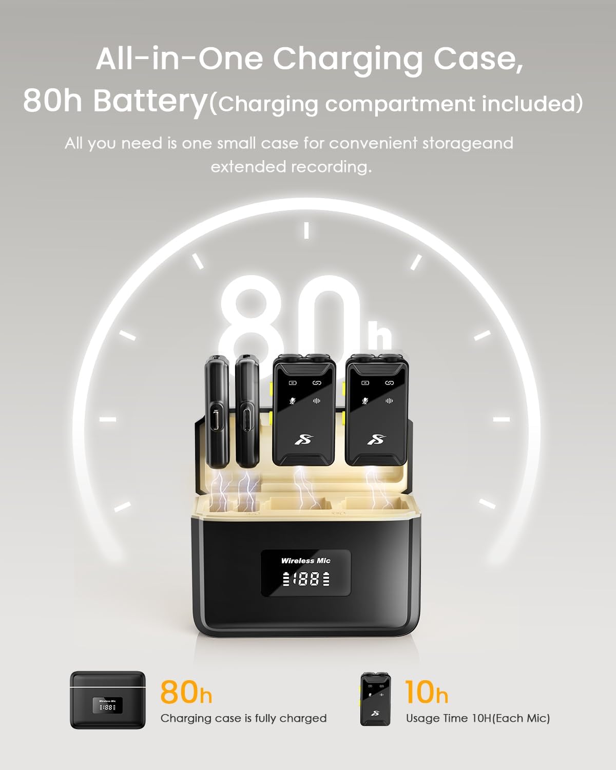 - All-Day Battery Life: Each mini microphone offers over 10 hours of continuous use on a single charge, and the compact charging case provides an additional 80 hours of backup power. Whether you're filming, streaming, or in meetings, this lavalier microphone keeps up with your busiest days without interruption.