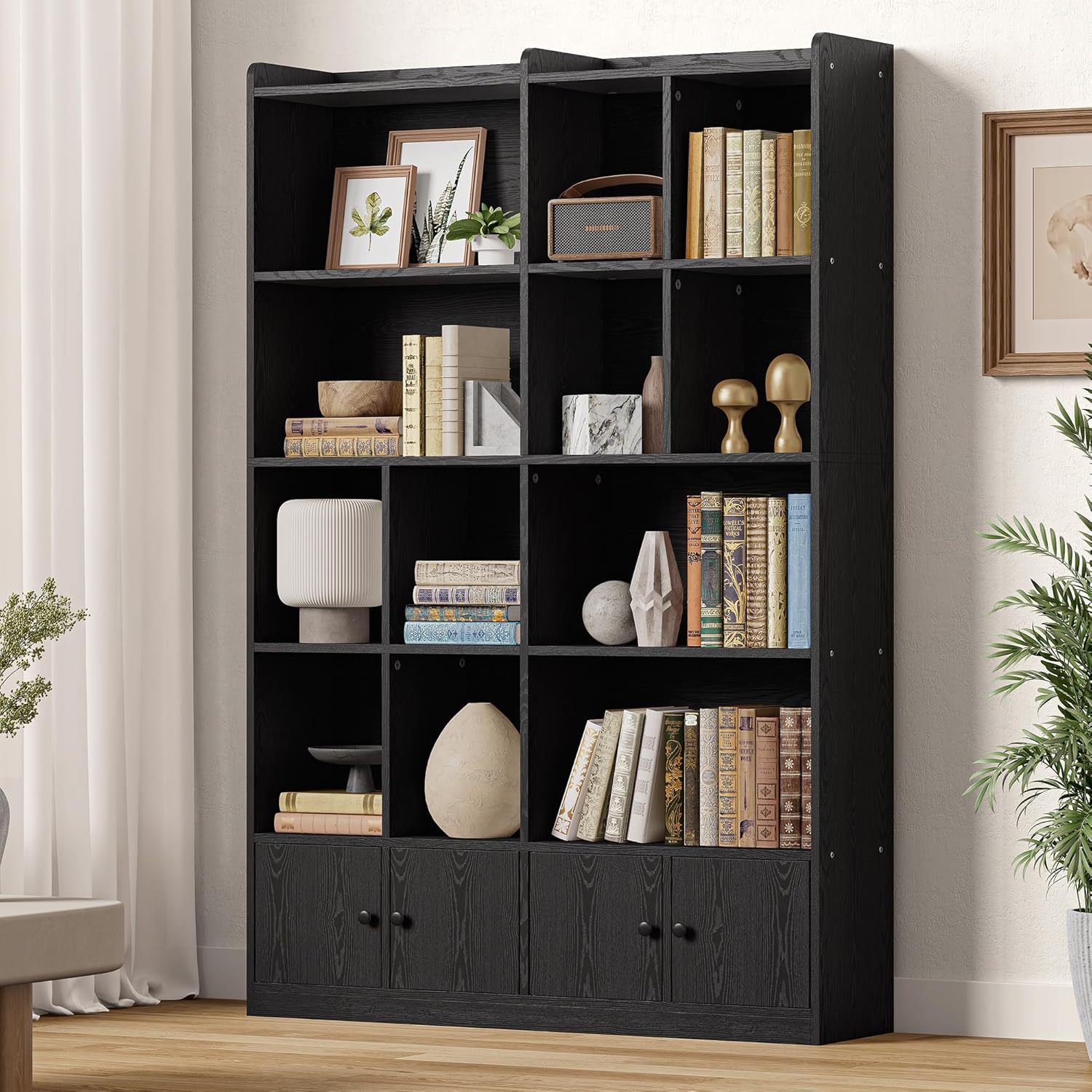 IRONCK Bookshelves and Bookcase, 6 Tiers Large Bookshelf with 4 Doors, Floor Standing Tall Display Storage Shelves for Home Office, Living Room, Bedroom, Black